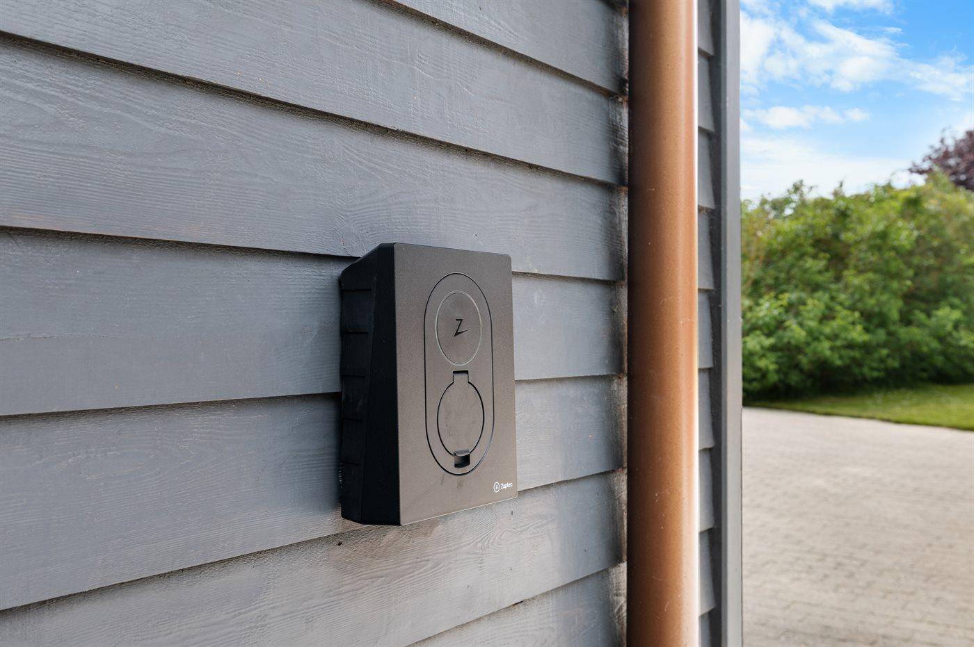 Ferieboligen er beliggende på en 1797 m² stor havegrund. Grunden er indhegnet. Der er 550 m til havet. Nærmeste forretning er beliggende i en afstand af 750 m. Til ferieboligen hører åbent terrasseareal. Desuden er der overdækket terrasse. Udgang til altan. Der er redskabsrum. Gynge. Der ligger en legeplads i en afstand af 650 m. Bålsted. Grill til rådighed. Der er installeret stik til opladning af elbil. Parkering ved ferieboligen.