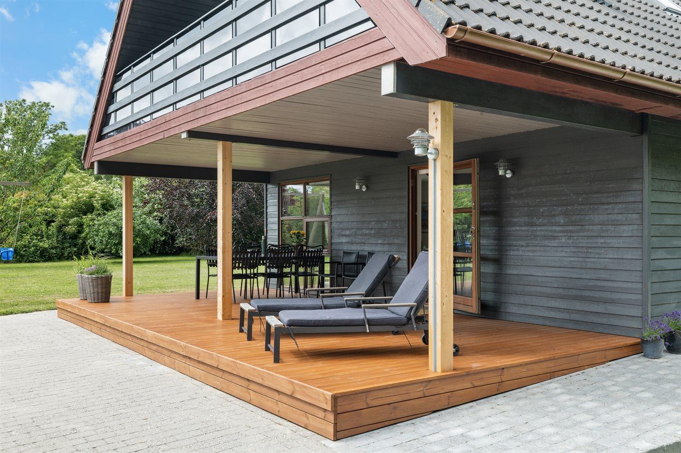 Der er en skøn overdækket terrasse og en stor have med bl.a. frugttræer, bærbuske, bålsted og gynger. Fra haven er der udgang til et stort skovområde, og flere strande i gåafstand.