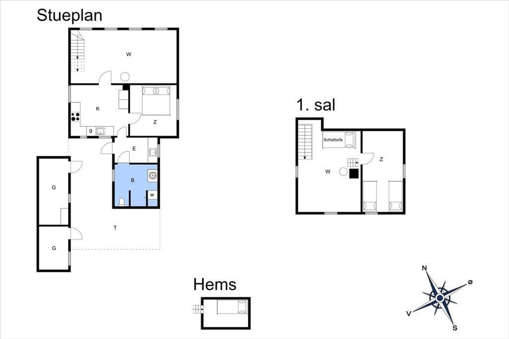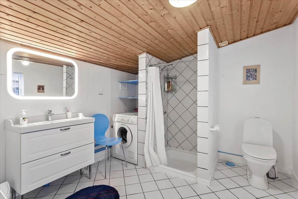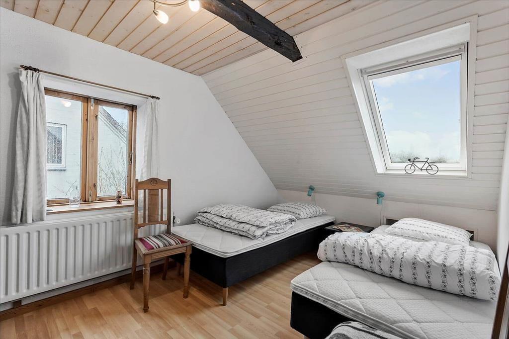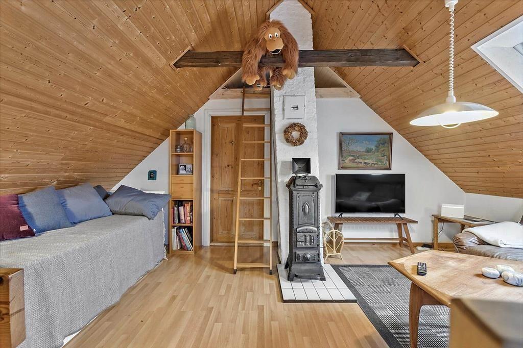Huset strækker sig over to etager og er indrettet med personlighed. I stueetagen finder du et rummeligt opholdsområde med en dejlig brændeovn, som straks indbyder til hyggeaftener foran flammernes varme skær. Her kan du og dine nærmeste slappe af, spille brætspil eller fordybe jer i en god bog. Køkkenet er praktisk indrettet og står klar til at hjælpe med at tilberede dagens måltider, som I kan nyde ved spisebordet i stuen eller tage med ud på terrassen. Sommerhusets to soveværelser er lyse og behagelige, og der er to sovepladser på en sovesofa på 1. sal.