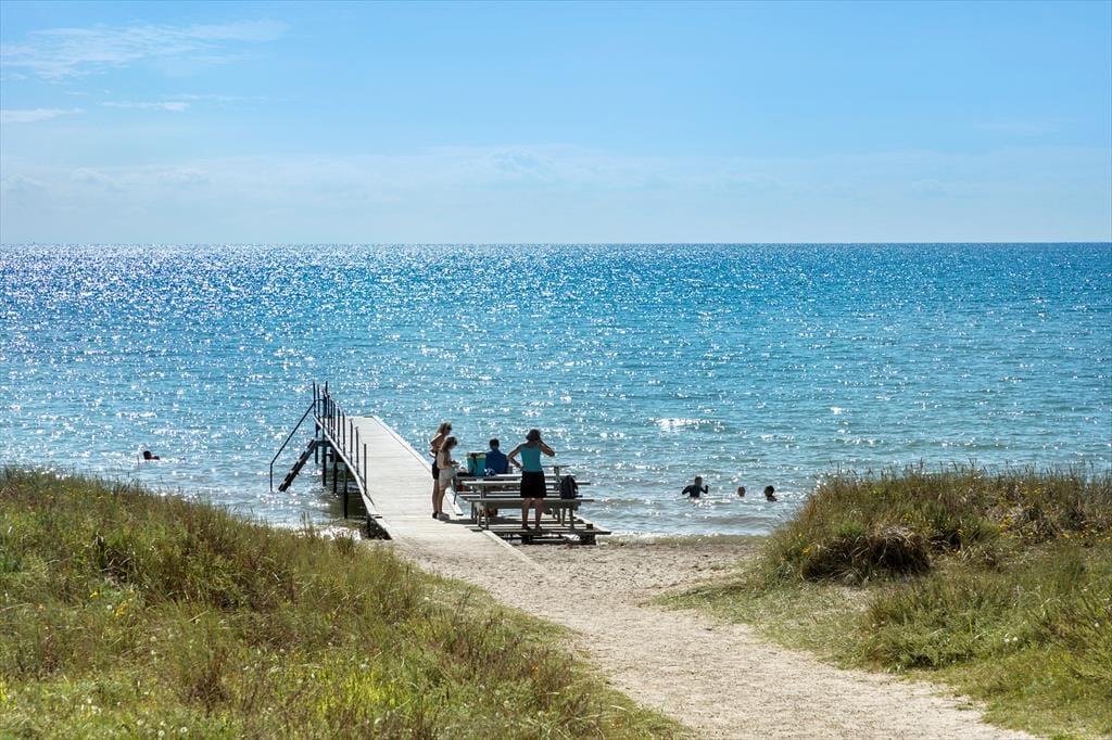 Dejligt stort nyere sommerhus i nærheden af den fine sandstrand ved Bredfjed. Her emmer af sommerhus-idyl samt fred og ro. Den helt rigtige feriestemning. Tag en aftentur og se solen gå ned i bølgerne. Der er desuden en badebro ved stranden og masser af krabber der kan fanges. Nyd en tur til Lalandias store badeland og restauranter (som også tilbyder take-away), som ligger i kørselsafstand af sommerhuset eller tag en shopping-tur med færgen til Tyskland. Der er flere indkøbsmuligheder i Rødbyhavn, hvor der kan købes ind til dagligdagen eller kør til Domkirkebyen Maribo og spis en is på torvet. Hvis der er appetit til flere oplevelser, kan Knuthenborg Safari Park med anbefaling udforskes. Om aftenen kan der spilles spil omkring det store spisebord, mens ilden knitrer i brændeovnen.