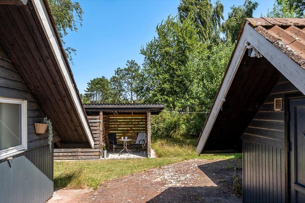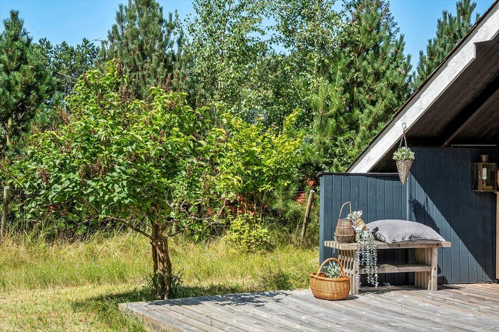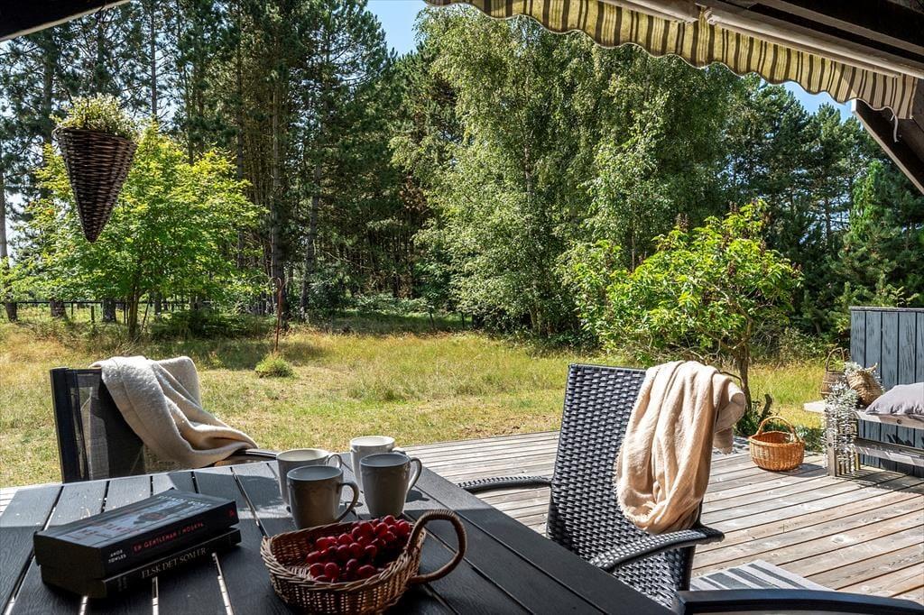 Sommerhuset er beliggende på en 927 kvm stor grund med masser af plads til udendørs aktiviteter på græsplænen. Til huset er en skøn terrasse der er delvist overdækket, på terrassen er der havemøbler og grill.