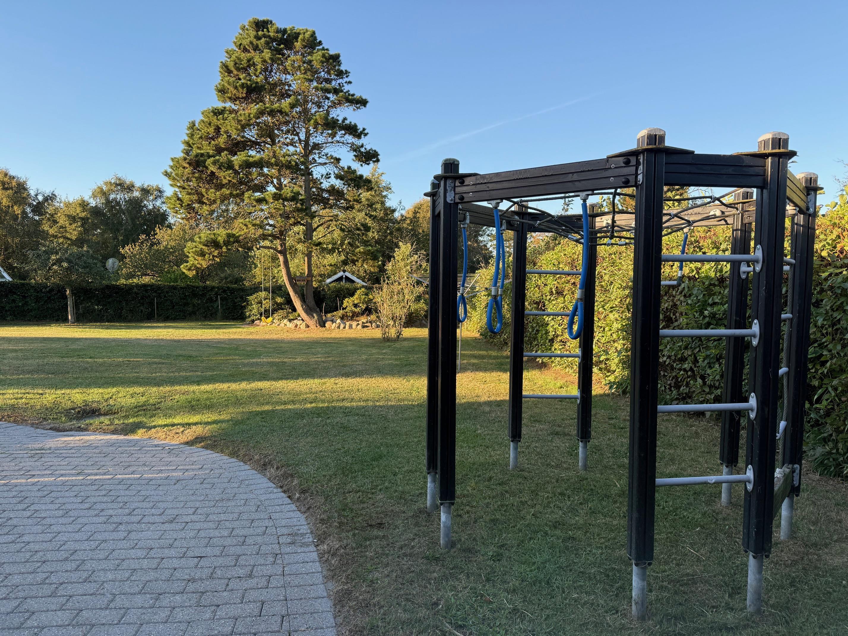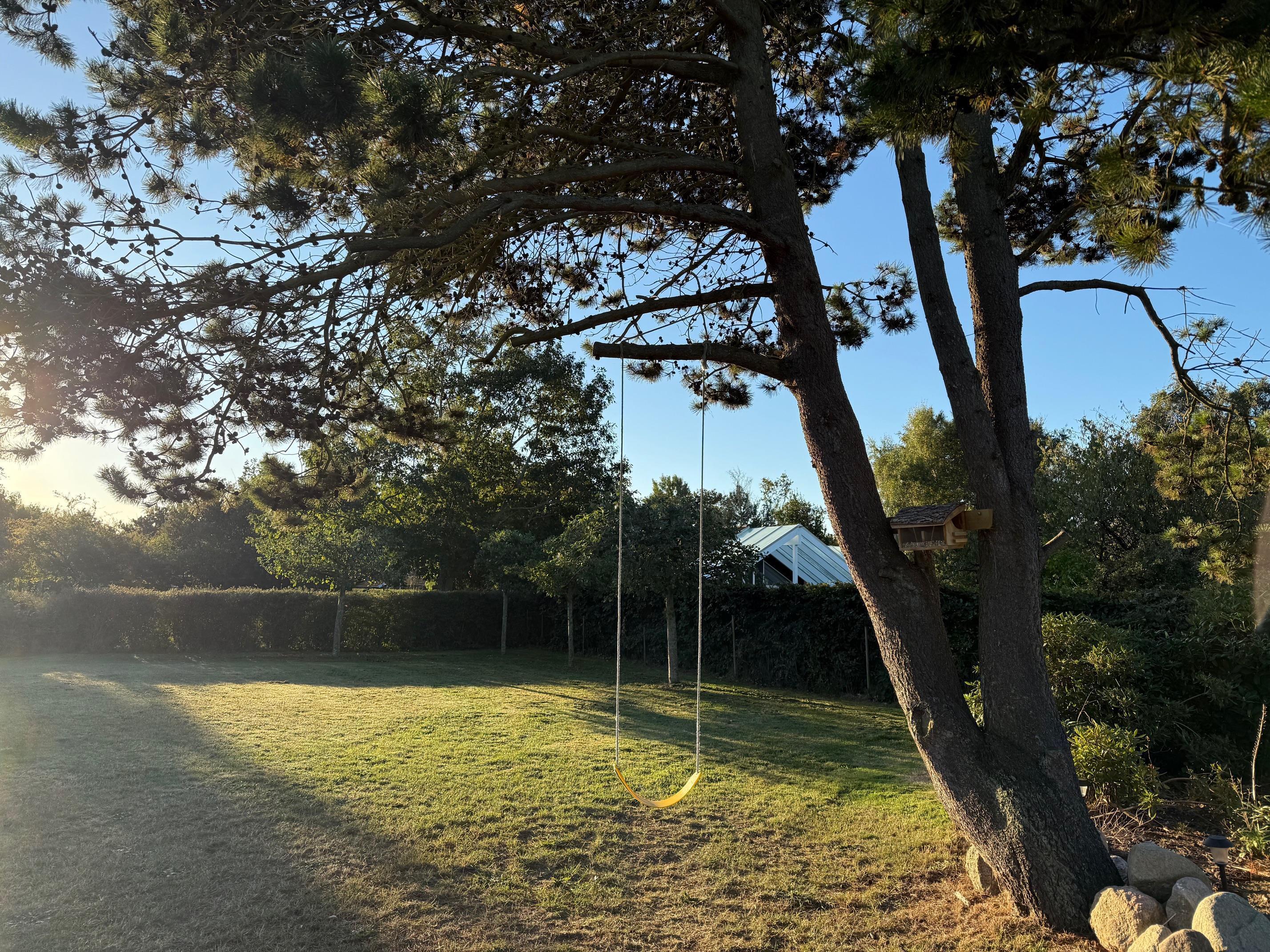 Nyd ferien på den store terrasse med havemøbler og grill – ideel til hyggelige aftener. Til børnene er der gynge, klatrestativ, mooncars samt diverse udendørs spilaktiviteter. Der er 5 cykler man kan benytte – heraf 3 børnecykler i forskellige størrelser. Husk at efterlade cyklerne i god stand til de næste gæster. Haven er indhegnet, og der er naturligvis parkeringsplads til bilen.