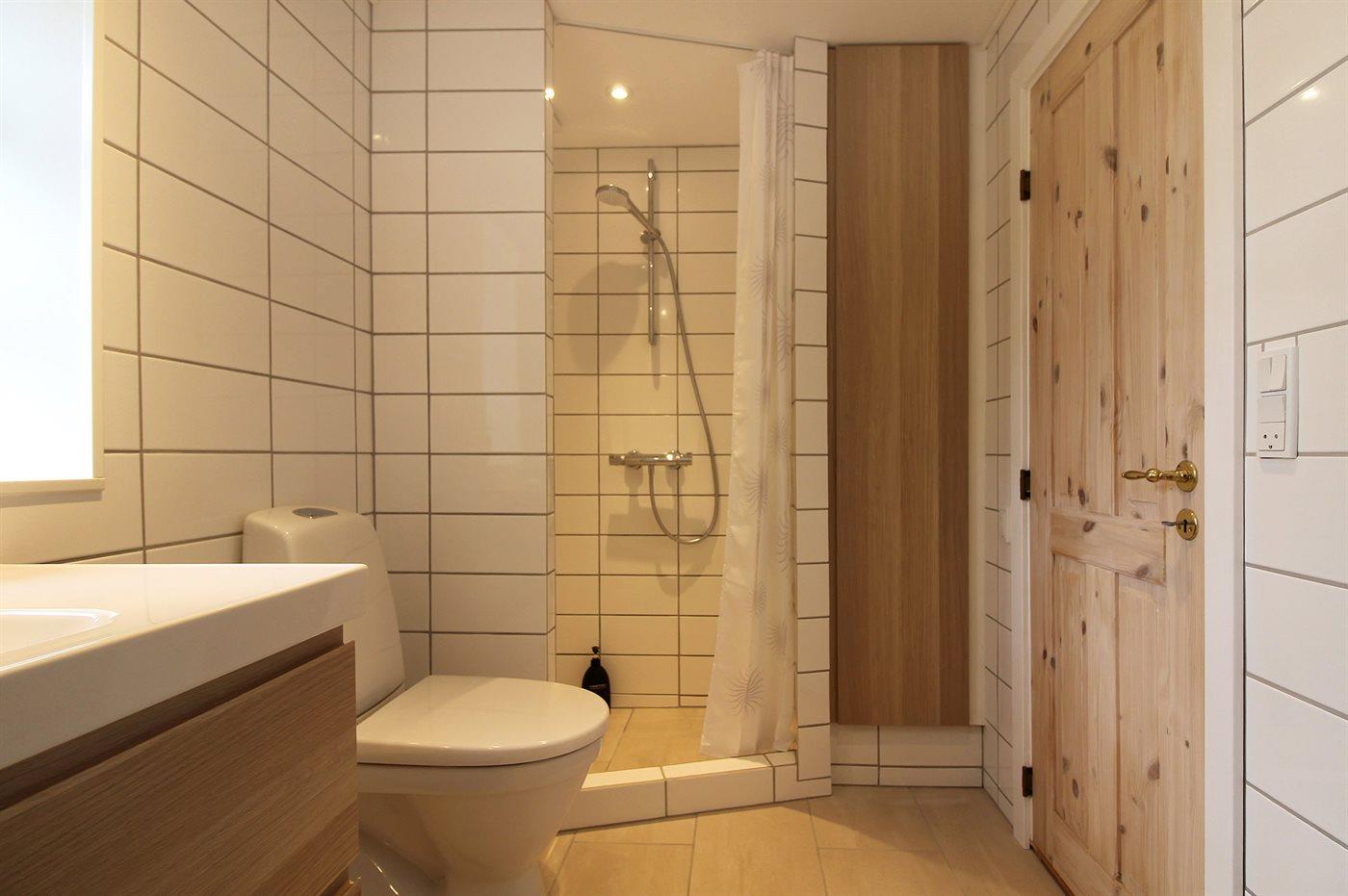 Der er 2 badeværelser med bruseniche og 2 toiletter. Der er gulvvarme på 2 badeværelser.. Badekar.
