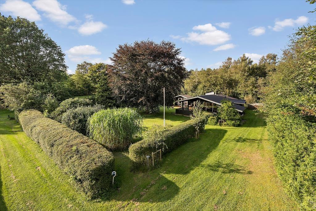 Med sine 1201 m2 er sommerhusets grund ganske stor, og den ligger helt roligt for enden af en lille sidevej i Fjordparken. Vil I spille havespil eller lege fangeleg, kan I give den gas på græsplænen, og ellers er der masser af plads til at drive den af på den 72 m2 store træterrasse, der byder på både åbne og overdækkede arealer.