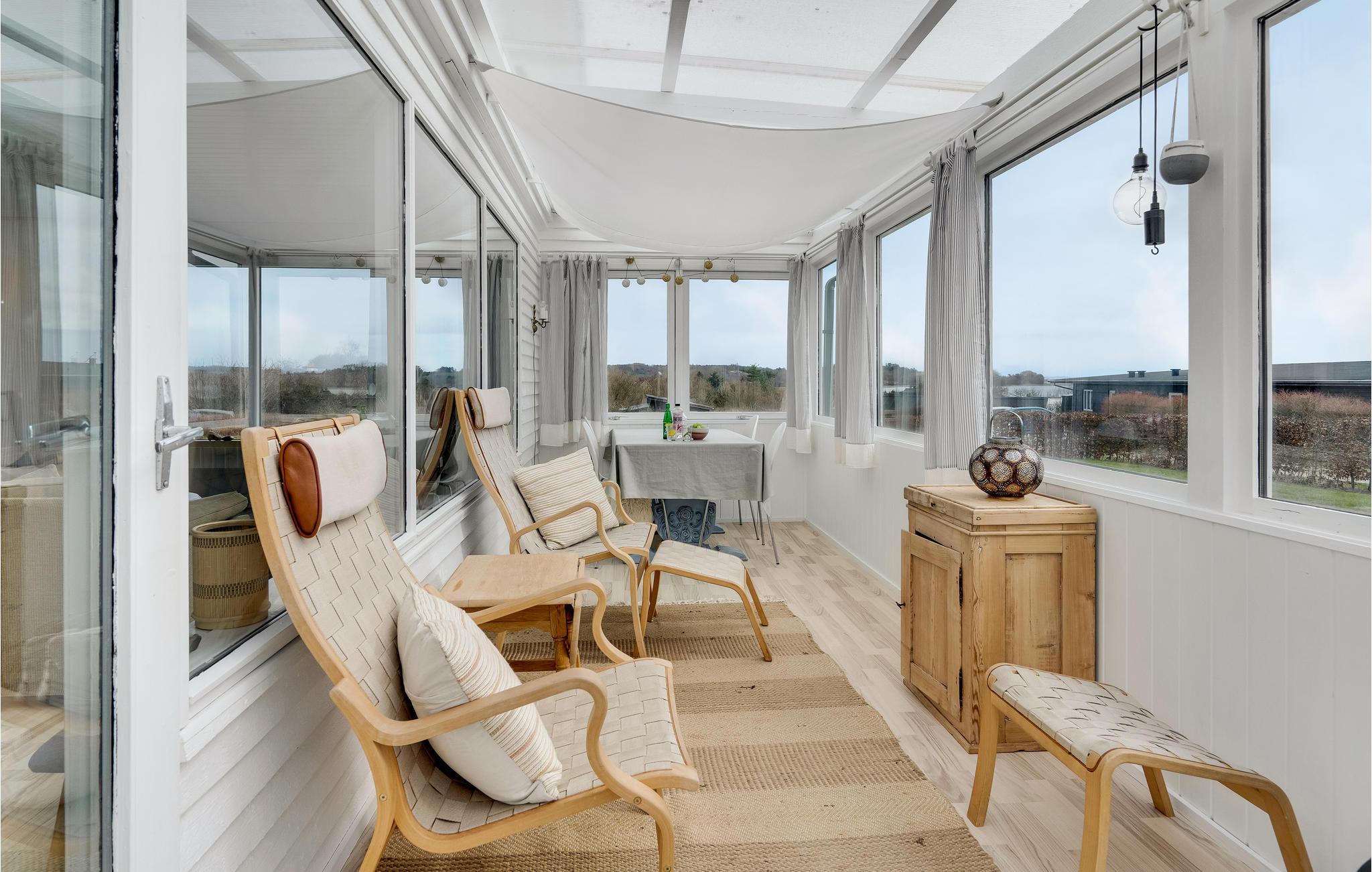 Hold jeres næste ferie med kort afstand til stranden i dette attraktive feriehus. Boligen er lyst og luftigt indrettet, så her er der gode rammer til jeres hyggestunder hjemme. De smagfulde stilvalg skaber en rolig atmosfære, som gør det nemt at slappe af. Husets mange lysindfald sørger for en dejlig udsigt til omgivelserne. Uanset om det er til fælles måltider ved spisebordet, en kop te i udestuen eller i den bløde sofa, kan I lade blikket vandre over omgivelserne. Tal om dagens bedste oplevelser, mens flammerne knitrer stemningsfuldt fra brændeovnen. Begynd dagene med at træde ud på terrassen og tag en tår af morgenkaffen til tonerne af fuglesang. Når I har nydt solen i haven om eftermiddagen kan I gøre klar til en dejlig grillmiddag.