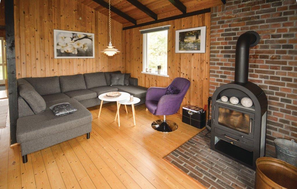 Charmerende og børnevenligt fritidshus nær Lovns Strand med terrasse, brændeovn og gratis WiFi.