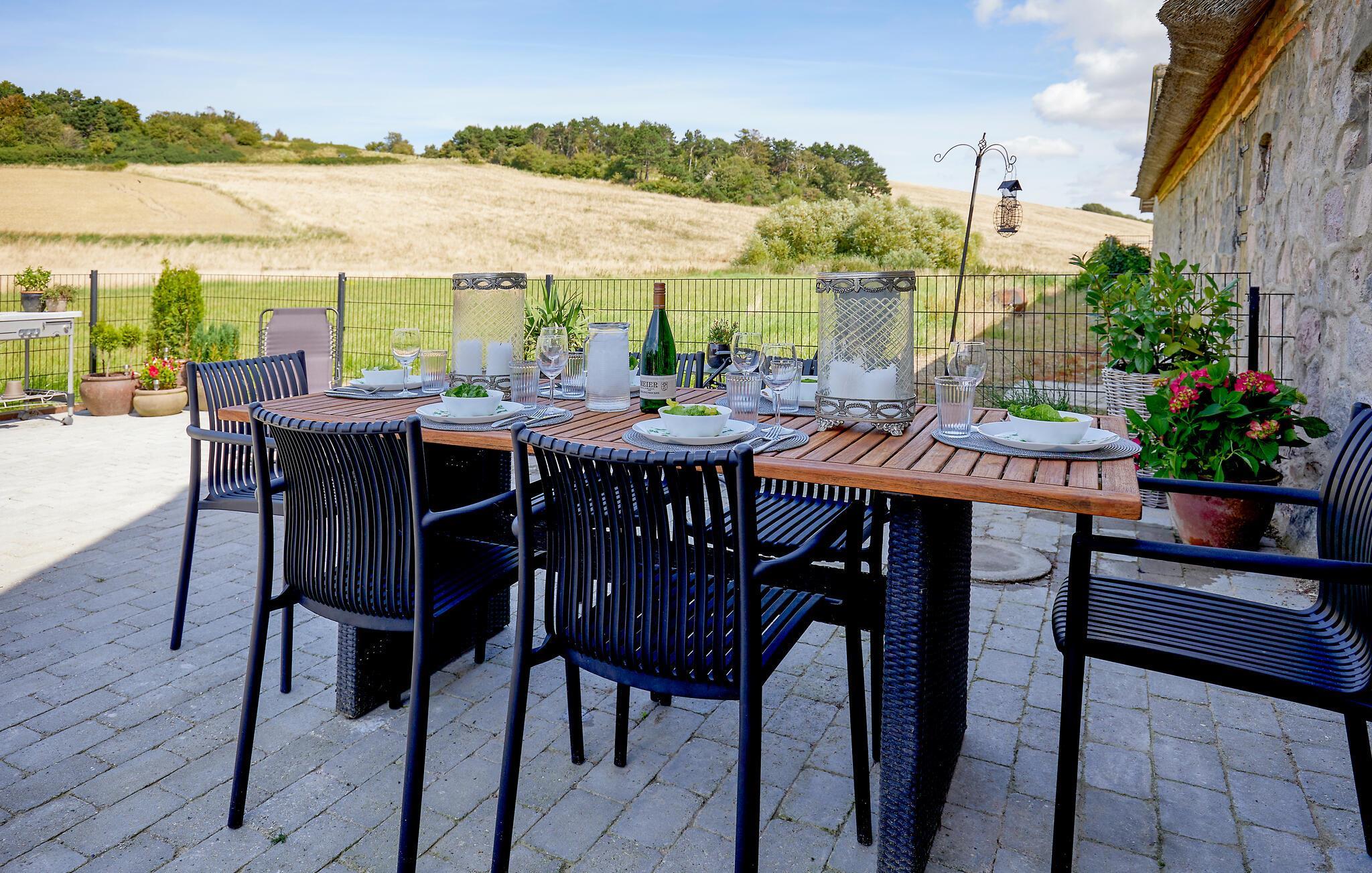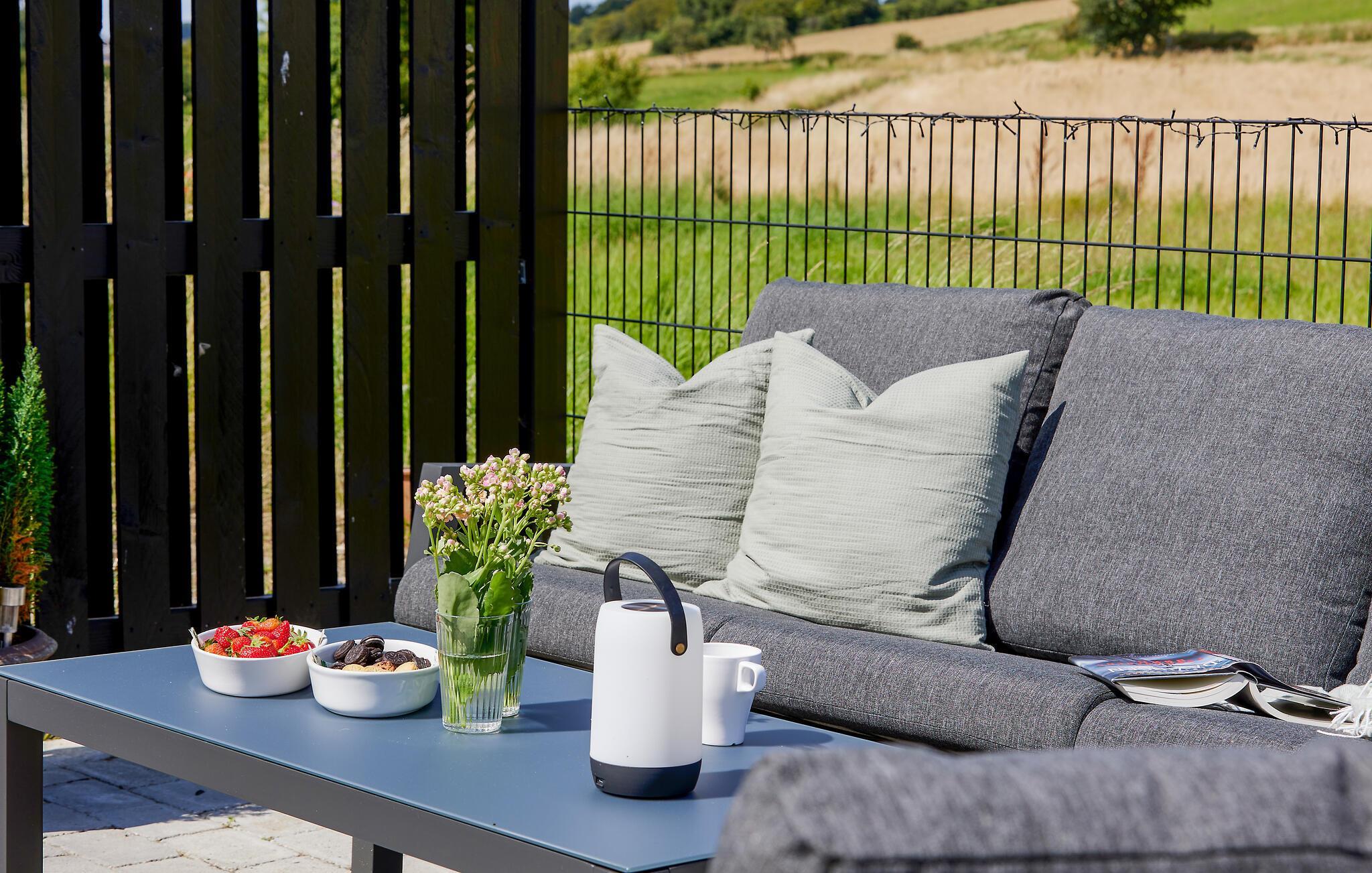Til lejligheden hører en dejlig terrasse med behagelige møbler, hvor I kan nyde solen, morgenkaffen og læse en god bog med en flot udsigt til omgivelserne. Her finder I også en grill, hvor I kan tilberede nogle saftige bøffer og servere dem under den lune aftensol.