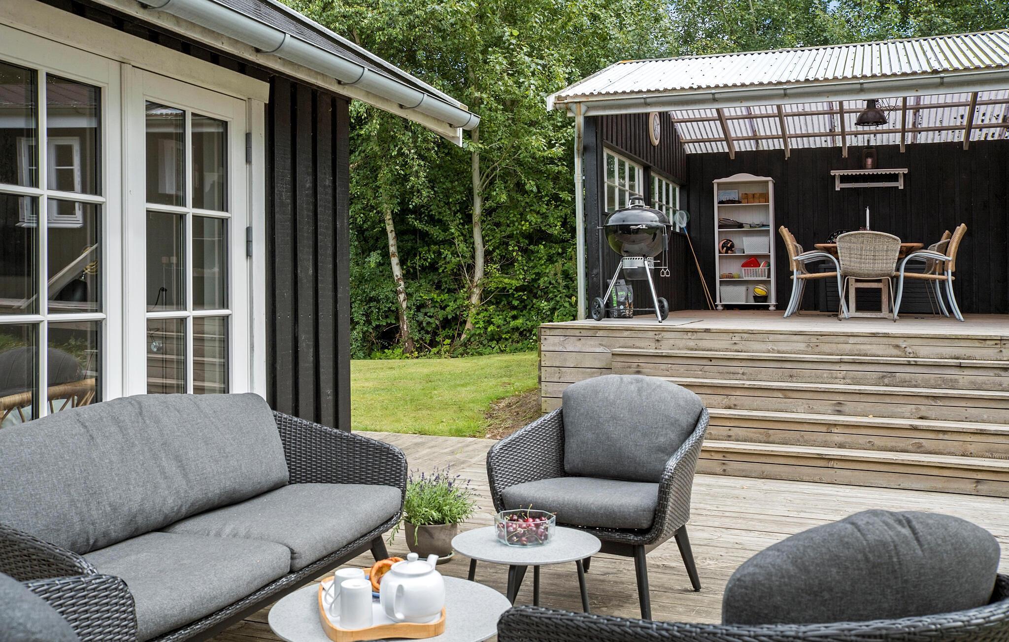 Brug den rummelige terrasse med komfortable siddepladser og en separat grillpavillon til at tilbringe en afslappende tid udendørs sammen. Slap af på liggestolene med udsigt til det grønne, mens børnene leger ubekymret på den rummelige græsplæne eller gør meget brug af trampolinen.