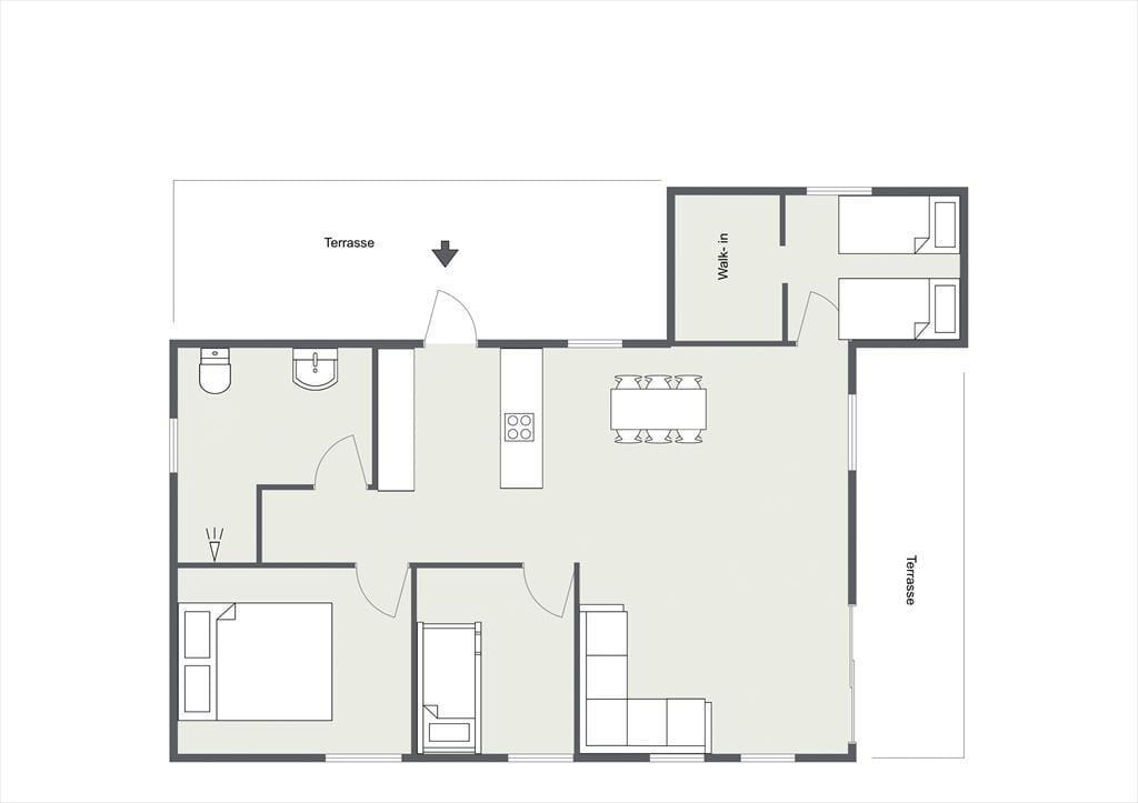 På den store terrasse er der god plads til afslapning, her kan I nyde solen fra morgen til aften og spise en god middag imens morgendagens aktiviteter planlægges. Når duggen falder på, kan sommeraftenerne forlænges i den hyggelige overdækkede afdeling på terrassen. Måske er I endda heldige at se et rådyr, en hare eller et egern mens der hygges omkring bordet. Det kan varmt anbefales at gå en lille aftentur ned til stranden for at se solen gå ned. Ligesom det er skønt med et udendørsbad under bruseren efter en dejlig dag med masser af aktiviteter på stranden