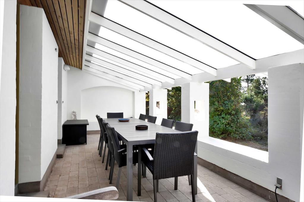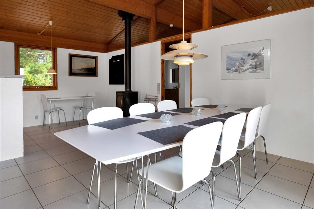 I den dejlige stue kan du slappe af og nyde den skønne udsigt mod havet. Der er stor tv-pakke bl.a med dansk og tysk tv. Stort åbent køkken med opvaskemaskine og en god spise afdeling. Der er badeværelse med badekar og brus samt gæstetoilet. Med husets fire store soveværelser er her bestemt god plads også til flere familier. I det tilhørende aktivitetsrum kan I både spille bordfodbold og bob. Fra stuen er der udgang til en skøn, stor terrasse, opdelt i en særdeles hyggelig overdækket og flere åbne afdelinger. Her er det oplagt at nyde solen fra morgen til aften, mens du fordyber dig i en spændende bog eller nyder et godt glas vin. Der tilhører endvidere et lille orangeri, men husk også at tage dig et bad under den dejlige udebruser efter en skøn dag på stranden.