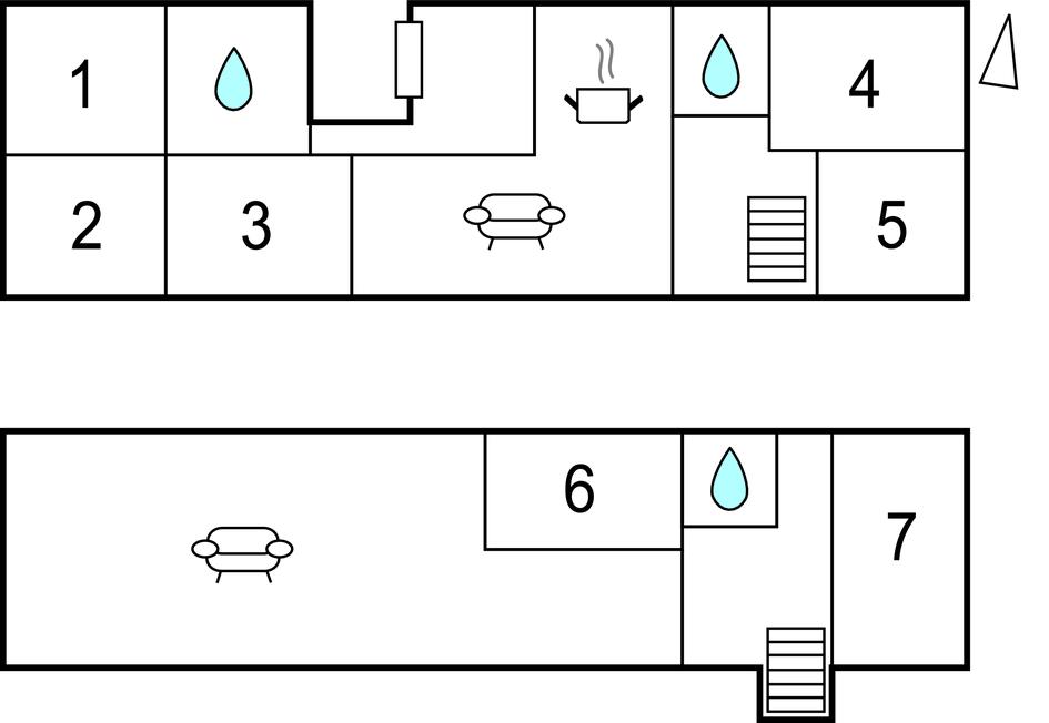Soveværelse (nr. 6) - 1 Soveplads. (Enkeltseng(e)). 2 Sovepladser. (Dobbeltseng(e)).
