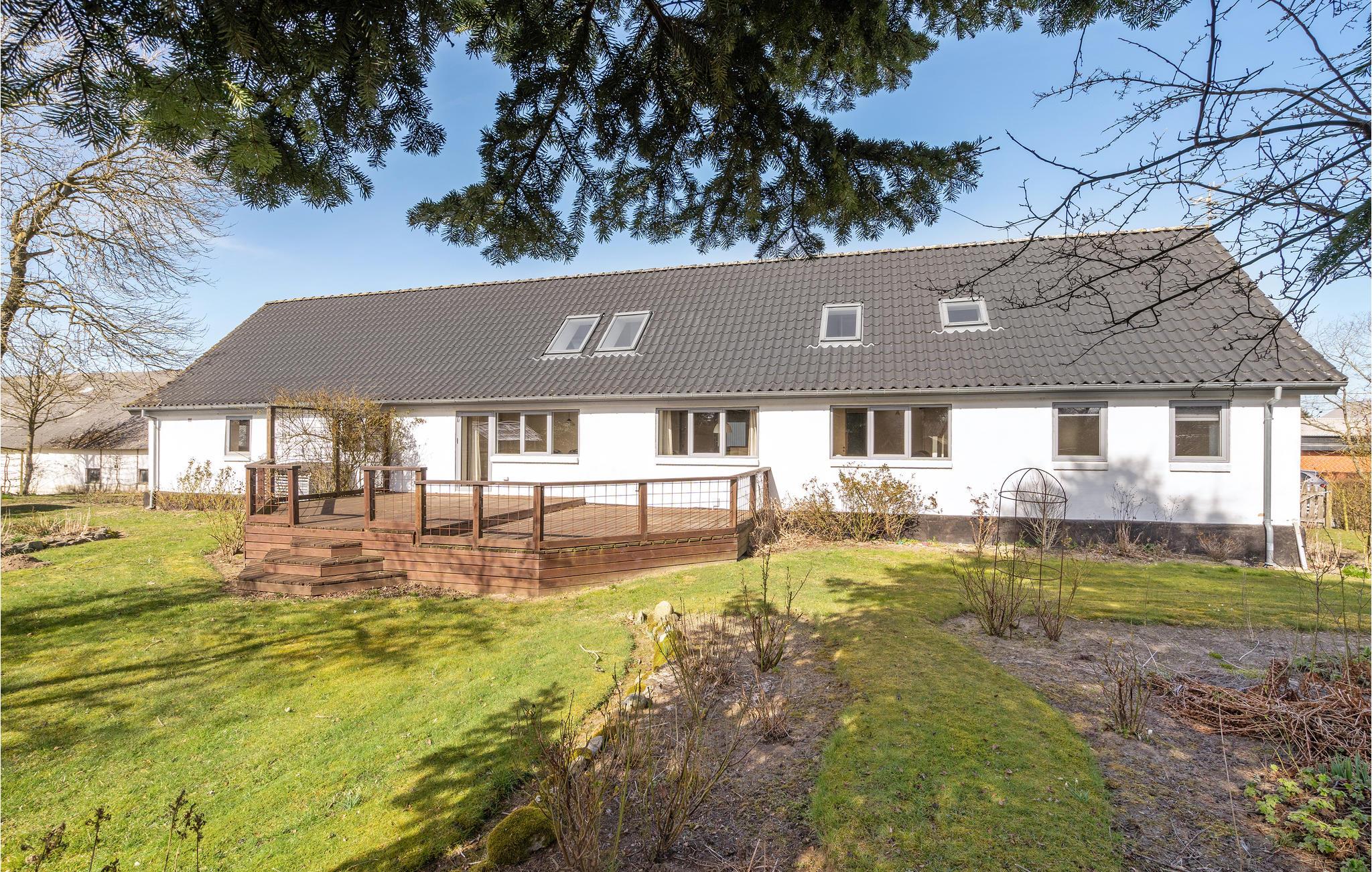 Velkommen til denne meget rummelige gård, som ligger idyllisk placeret tæt ved Skive Fjord og giver jer mulighed for at holde en dejlig, fredfyldt ferie i smukke naturomgivelser. Huset er godt indrettet til den store familie eller en større vennegruppe, og I kan se frem til stemningfulde rammer, for boligen er både lys og moderne med samtidig med de smukke fritlagte bjælker, der fortæller husets historie. Snup et spil billard eller bordtennis i loftsrummet, som har en skøn udsigt gennem det charmerende gavlvindue og nyd måltiderne ved det lange spisebord med hyggelig udsigt over haven.