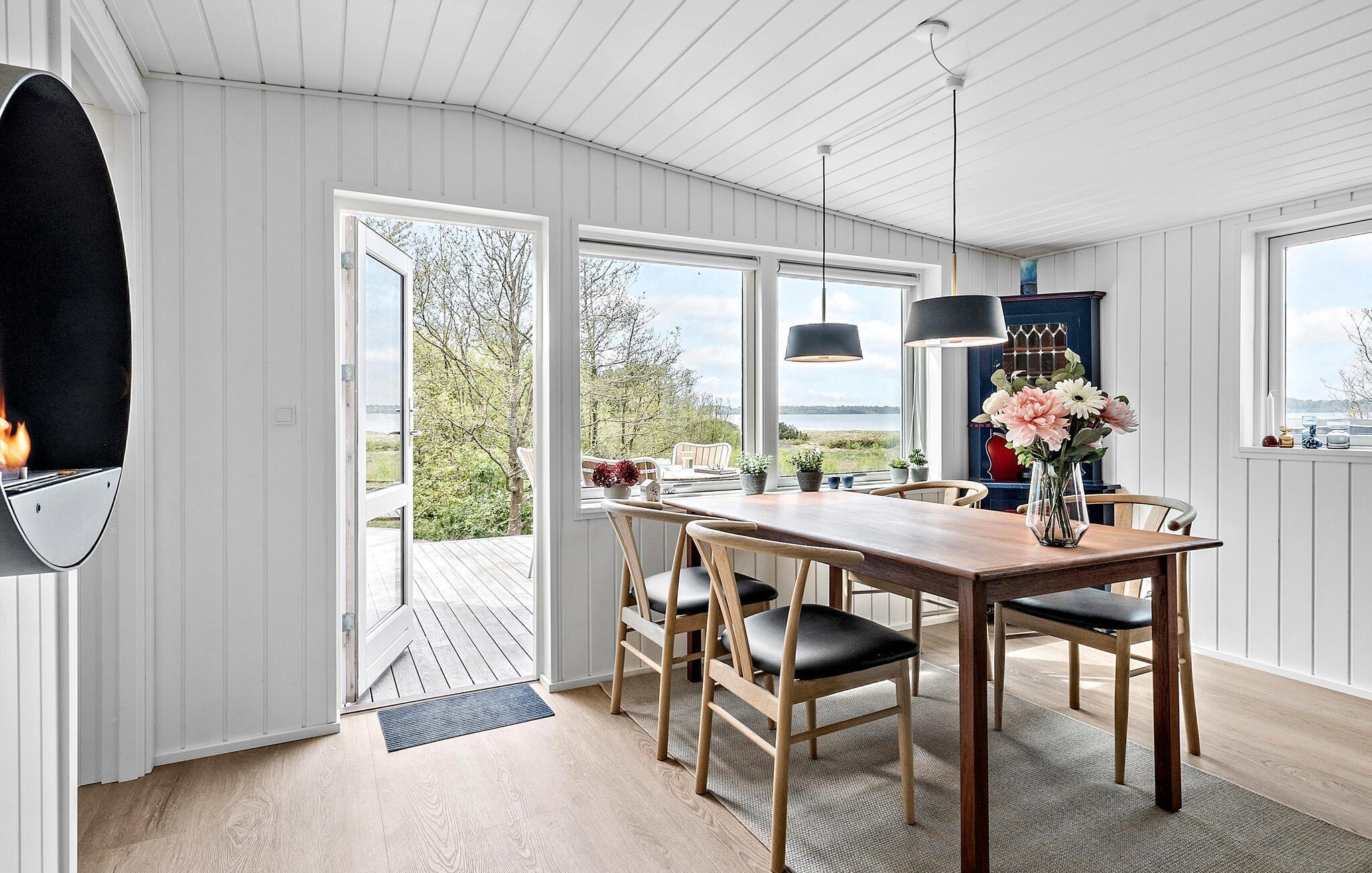 Terrassen løber om flere sider af huset, så I kan finde sol, skygge og læ efter behov i løbet af dagen. Fra terrassen har I en fantastisk udsigt helt ud til spidsen af Lundø. Læs en god bog, indsnus den friske luft og tilbered saftige bøffer på grillen under aftensolen. Måske I skal forkæle jer selv med en tur i det udendørs spabad under stjernerne?