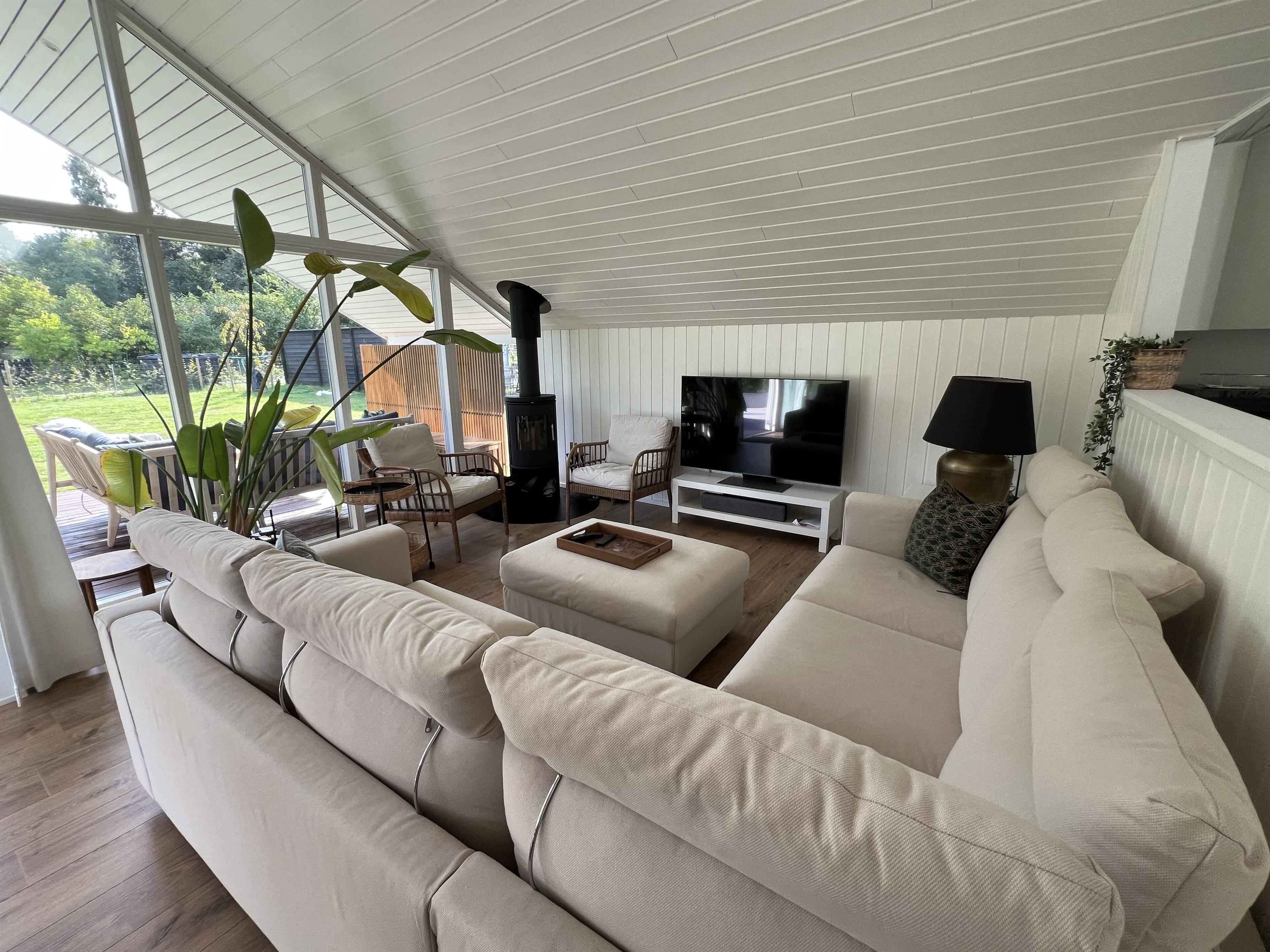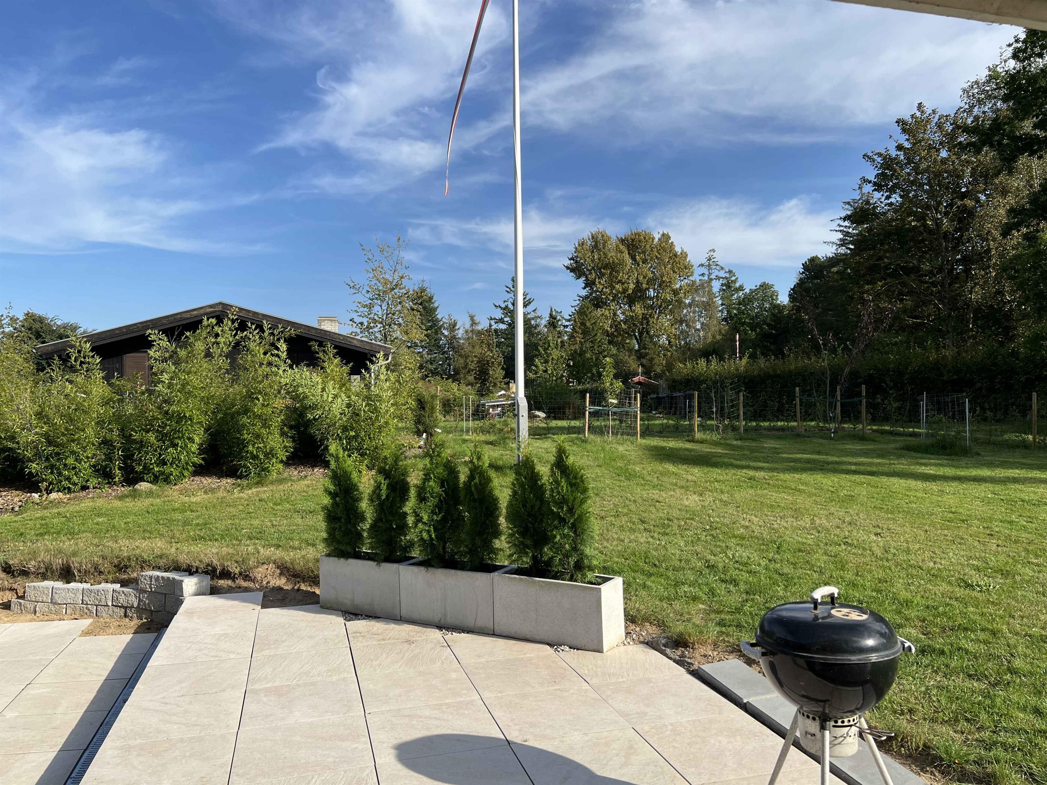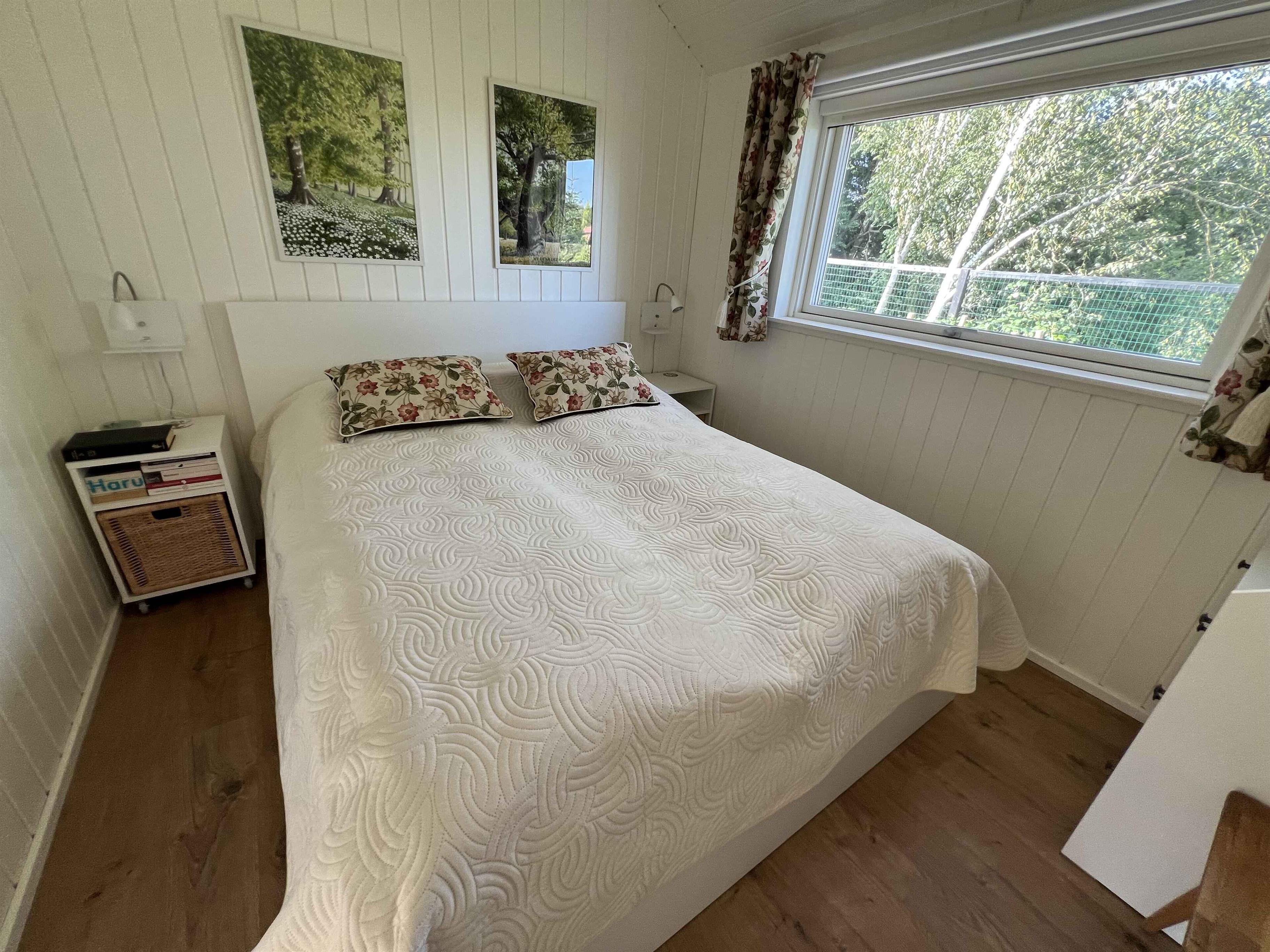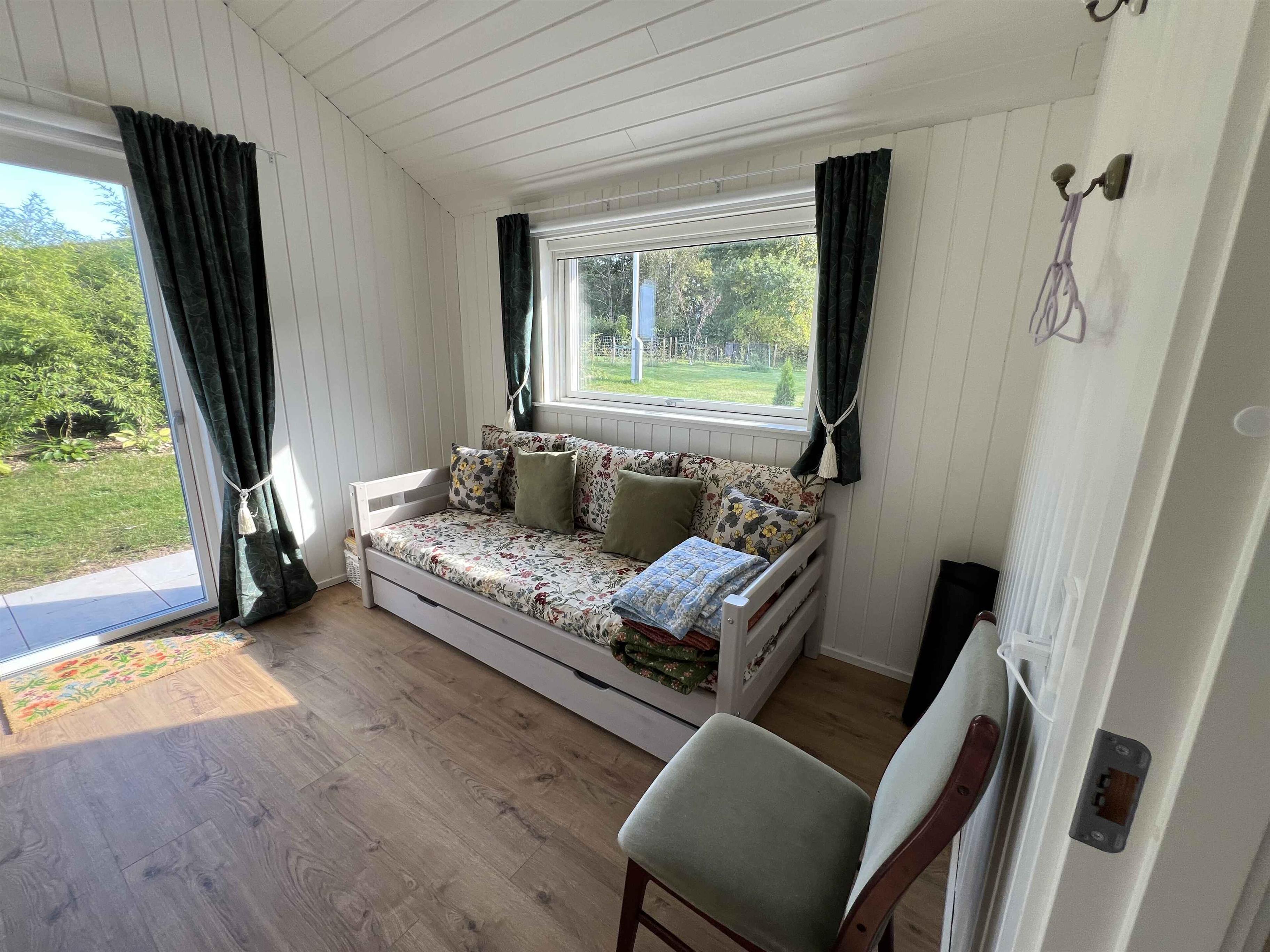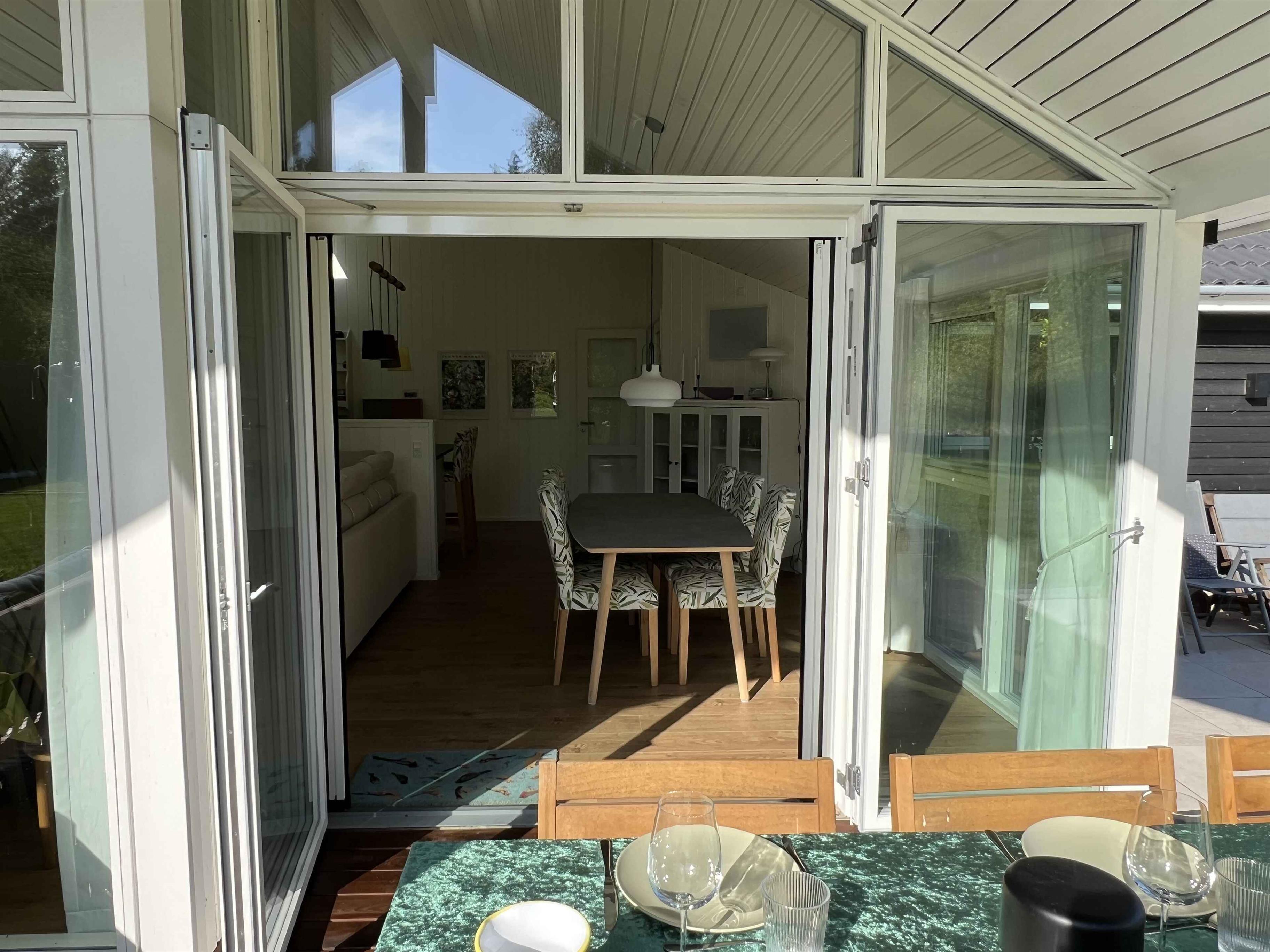 Ecovenligt sommerhus fra 2023 nær bugt & strand, 8 pers. 4 værelser (3 dob./2 enk), 2 badeværelser (sauna/spa/vaskemaskine/tørretumbler), gulvvarme, aktivitetsrum. Solrig grund med terrasse, grill og spil. Veludstyret køkken, hyggekrog, elbil-oplader