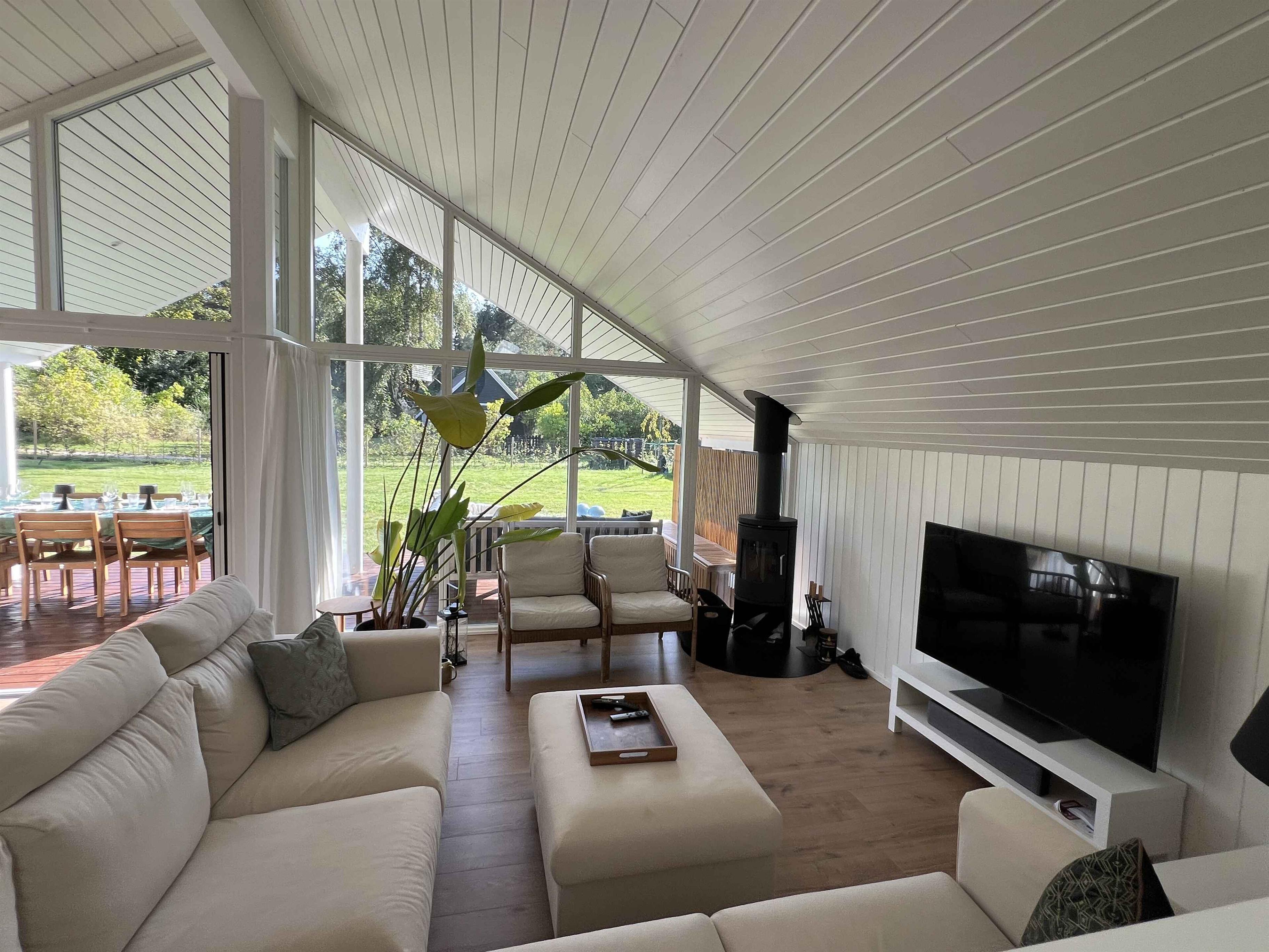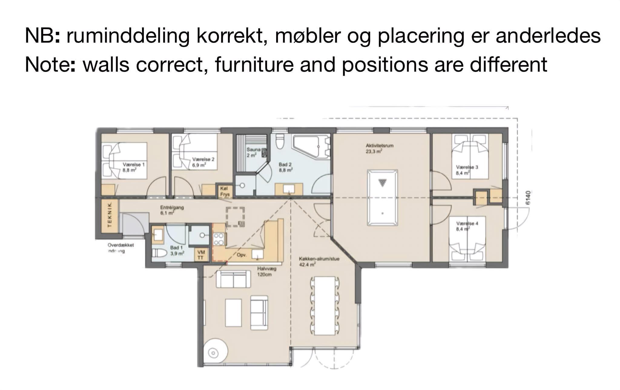 Dette rummelige feriehus på 136 m² rummer fire soveværelser og i alt otte sovepladser. Det er fuldt opvarmet med gulvvarme og indrettet med komfortable detaljer, der gør det let at føle sig hjemme. Huset byder på to badeværelser, hvoraf det ene har sauna og spa, mens det andet rummer vaskemaskine og tørretumbler. Der er desuden et lyst køkken-alrum, aktivitetsrum samt brændeovn til hyggelige aftener. Hus og have: Haven er indhegnet (hvilket ikke altid forhindrer smukke rådyr i at komme på besøg) og der er læ mod vestenvinden fra store træer på nabogrundene, hvor flagspætter og andre fugle holder til. Græsplænen er ideel til udendørs spil og aktiviteter (diverse udendørsspil ligger til fri benyttelse) og på de sydvendte terrasser kan behagelige havemøbler bruges til at nyde solen. På terrassen findes en kulgrill samt spiseområde og en hyggekrog med hjørnesofa (hynder findes indenfor). Forlængerkabel til opladning af elbil kan lånes (elkontakten er tæt på fordøren). Indenfor giver det åbne køkken-alrum mulighed for samvær ved spisebordet, som kan forlænges, eller afslapning i den store hjørnesofa foran tv’et. Køkkenet er udstyret med alt det nødvendige til madlavning, herunder induktionsplader, ovn, opvaskemaskine, fryser og kaffemaskiner. I aktivitetsrummet er der pool/snooker-bord samt brætspil, hvilket gør huset velegnet til både familier og vennegrupper. Beliggenheden i Kostræde Banker giver adgang til både fredelige omgivelser og spændende udflugtsmuligheder. På få minutter kan man gå til Dybsø Fjord eller det lokale supermarked, mens stranden ved Svinø blot ligger 7 km væk. Området indbyder til vandreture gennem varieret natur, hvor man møder fugleliv, marklandskaber og kystområder. Naturoplevelserne er mange: Ved Avnø Naturcenter er der afmærkede vandreruter og chance for at se sæler. Knudshoved Odde byder på sjældne planter og fredet landskab. For kultur og familieoplevelser kan Gavnø Slot med have og klatrepark, Skovtårnet ved Gisselfeld eller Køng Museum nås på korte køreture. De nærliggende byer Næstved, Vordingborg og Præstø tilbyder restauranter, shopping, museer og aktiviteter for alle aldre. Alt i alt kombinerer huset rummelighed, gode faciliteter og en beliggenhed tæt på både natur og kultur, hvilket gør det ideelt til en varieret ferie. Obs, udlejes ikke til erhversmæssigt brug.