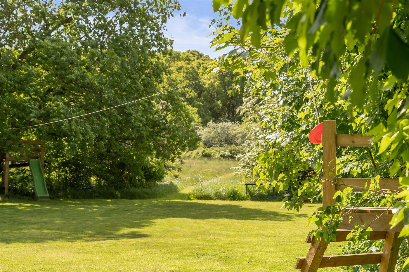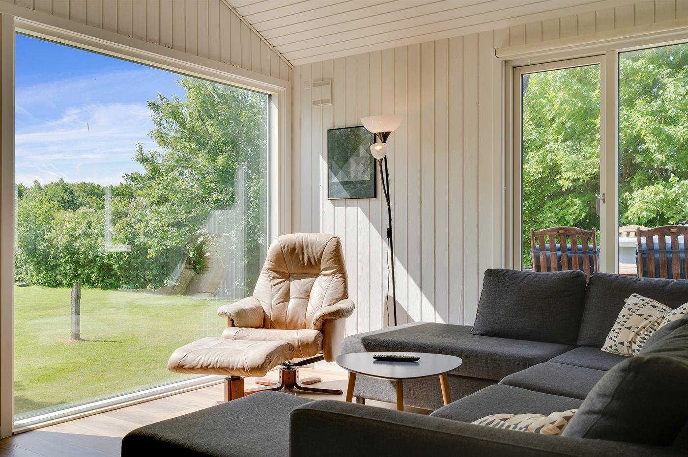 Ferieboligen er beliggende på en 2900 m² stor naturgrund. Der er 250 m til fjorden. Nærmeste forretning er beliggende i en afstand af 6600 m. Der er en golfbane i en afstand af 11000 m. Til ferieboligen hører åbent terrasseareal. Trampolin. Rutchebane. Grill til rådighed. Parkering ved ferieboligen.