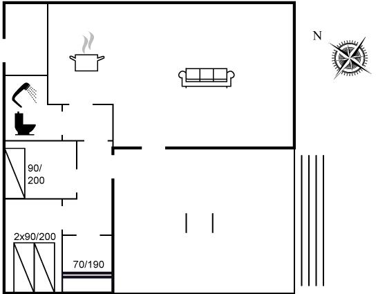Der er i alt 3 soveværelser. Sovepladserne fordeler sig på: 3 sovepladser i enkeltsenge. 2 sovepladser i køjeseng. Derudover er der 1 stk. barneseng.