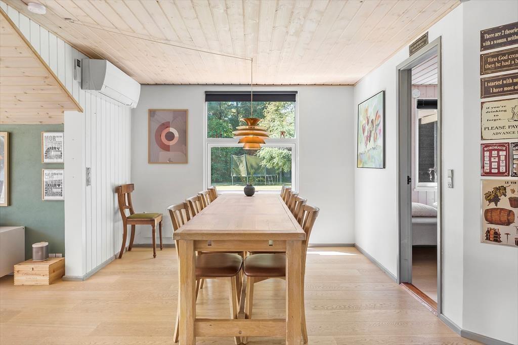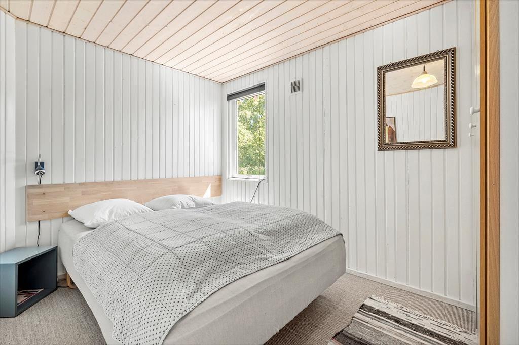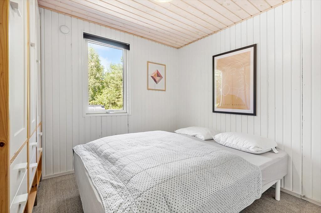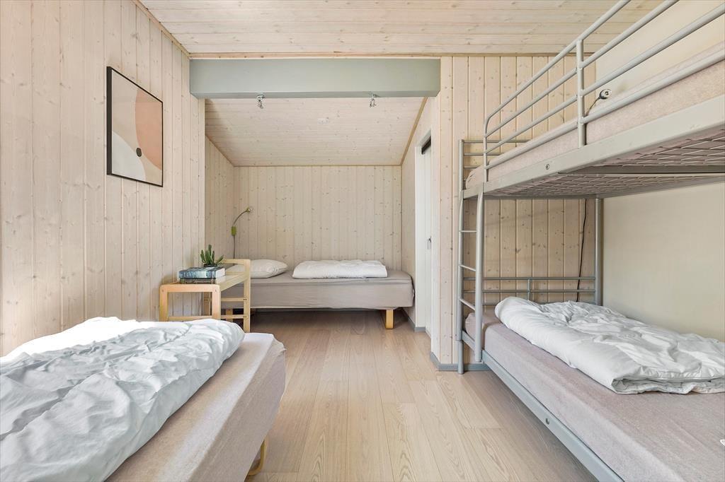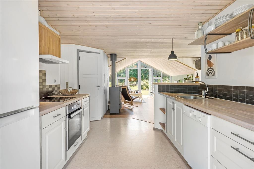 Det 82 m2 store sommerhus har ligget her i de grønne og idylliske omgivelser siden 1973. Siden hen er det blevet grundigt renoveret og efterfølgende indrettet på smagfuld vis, så rummene fremstår lyse og indbydende. Det gælder ikke mindst stuen, som er et dejligt opholdsrum med gennemstrømmende lysindfald, brændeovn, tv med Chromecast og mange andre dejlige detaljer. Et velindrettet køkken ligger i åben forbindelse med stuen, og her er der alt, hvad I skal bruge, når I vil trylle et lækkert aftensmåltid frem sidst på dagen. Er det tid til at sige godnat, kan I gøre jer klar til at sove en god nats søvn på de tre soveværelser, hvoraf to er indrettet med dobbeltseng og det tredje med to enkeltsenge og en køjeseng. Og når I igen står op, kan I starte dagen med et morgenbrusebad på det pæne badeværelse.