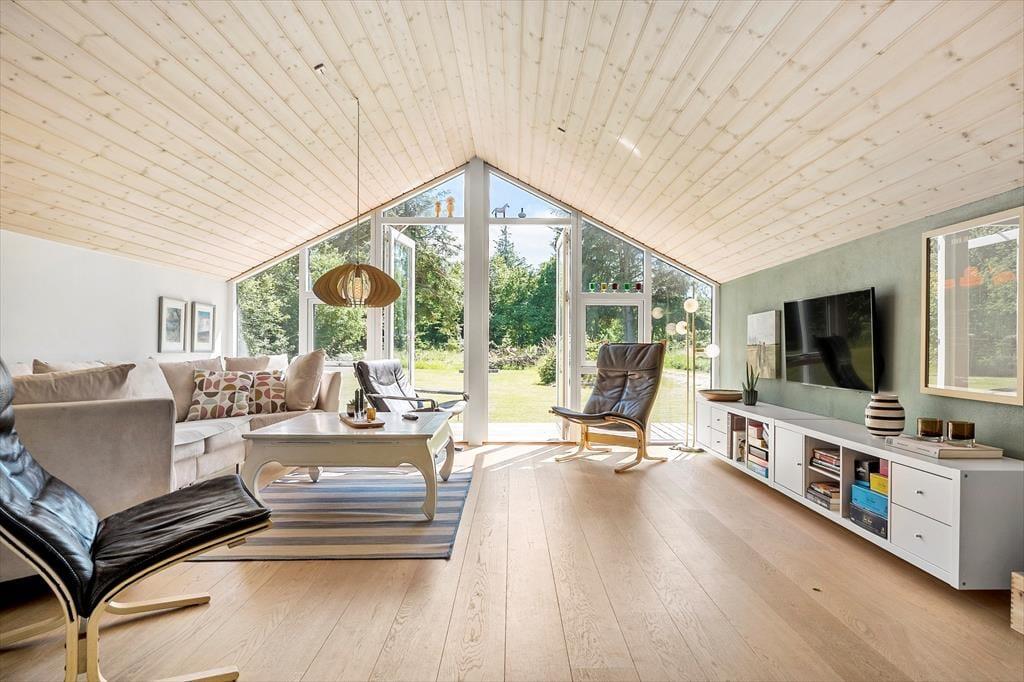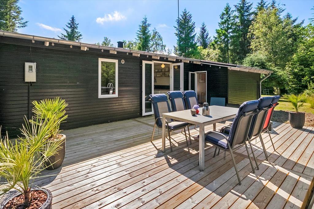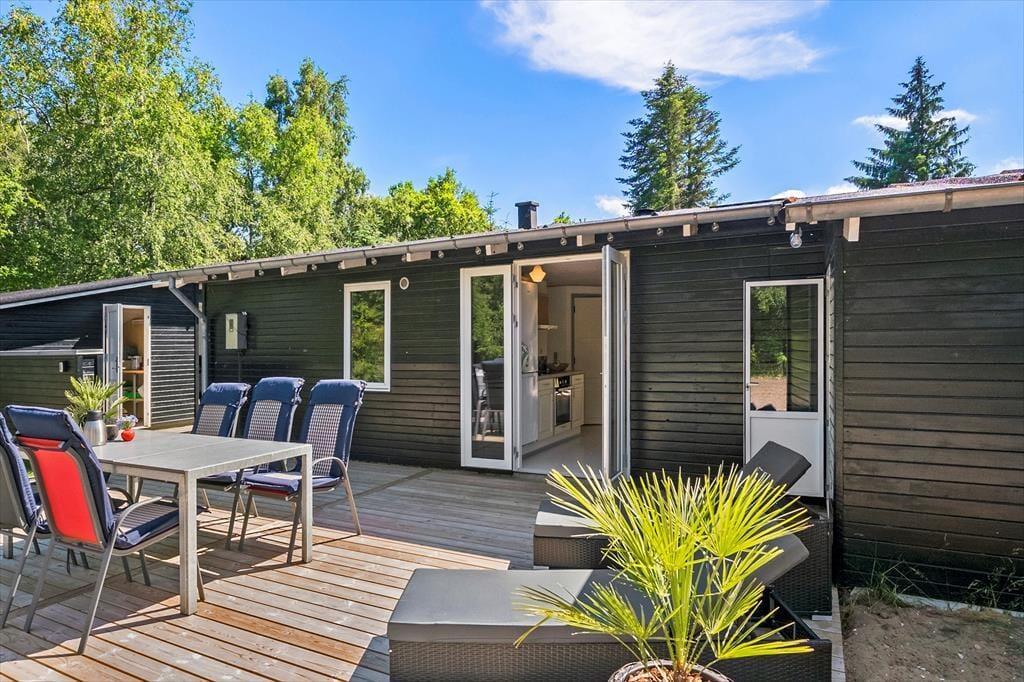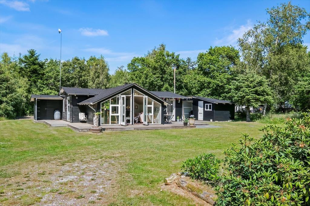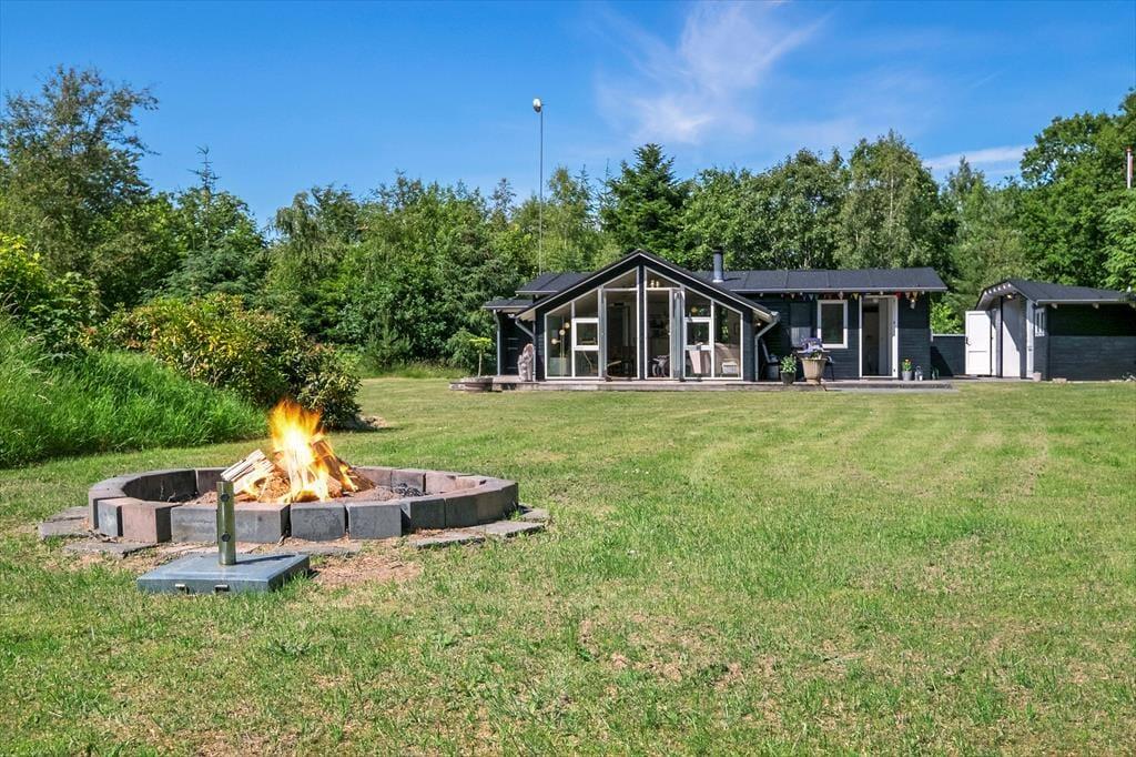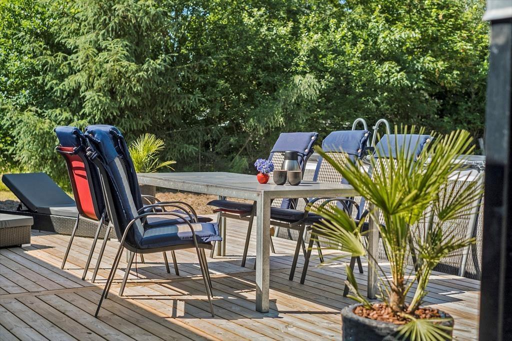 Ude i det fri kan I se frem til at lege og slappe af på den 3484 m2 store grund. Flot randbeplantning skærmer den store græsplæne af, og rundt om sommerhuset er der flere ugenerede og solrige terrasser at vælge imellem. Om aftenen kan I tilberede et overdådigt måltid på grillen, og hvis I stadig har appetit, kan I riste skumfiduser ved bålet. Kører I på ferie i elbil, er det ideelt, at der er lade stander på grunden.