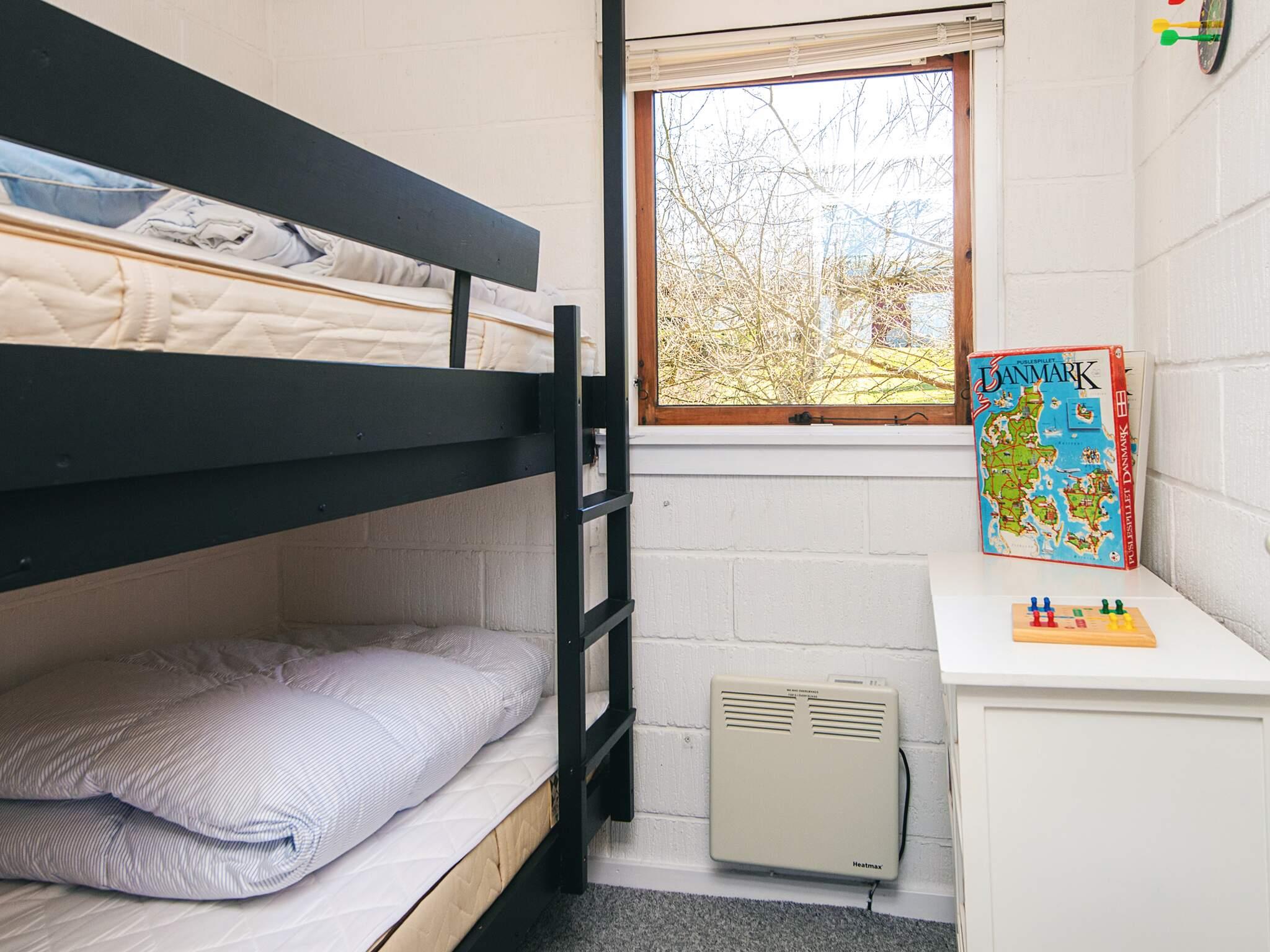 Den rummelige stue har højt til loftet og store vinduespartier, der fylder rummet med naturligt lys og skaber en åben, luftig atmosfære. I tilknytning til opholdsstuen er der et åbent køkken med spiseplads og et hyggeligt opholdsområde med tv. Fra stuen har du adgang til tre soveværelser: et med dobbeltseng, et andet med enkeltseng og et tredje med køjeseng med to køjer. Fra stuen er der desuden udgang til en lys hems (oplægninger) med tre ekstra sovepladser, ideel til børn eller ekstra gæster.