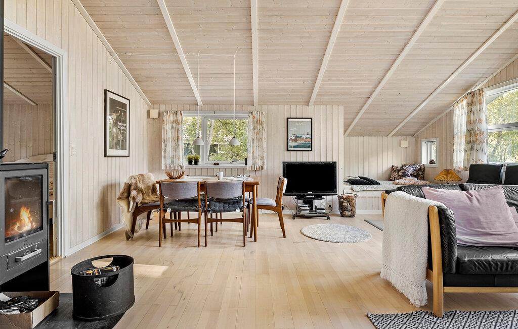 Midt i Limfjordens fredelige natur venter jeres smukke feriehus i Lynderup, et sted for afslapning og glæde for hele familien. Nyd fælles måltider ved det store spisebord i opholdsområdet. Det rummelige, moderne køkken indbyder til fælles madlavning og samvær. Benyt de mange hyggelige siddepladser til afslappende aftener med spil eller film, og på køligere dage kan I tænde brændeovnen, som skaber en særligt hyggelig atmosfære.