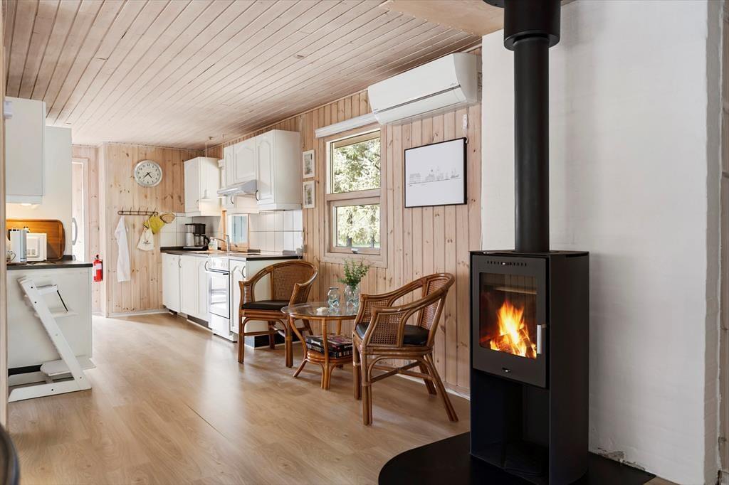 Der er noget særligt over dette charmerende træhus – en ro og varme, der mærkes, så snart du træder indenfor. De lyse rum, den enkle og indbydende indretning og de små detaljer, som vidner om ejerens kærlighed til stedet, skaber en afslappet atmosfære, hvor det er let at føle sig hjemme. Her kan du nyde lange morgener med kaffe ved spisebordet, mens solens første stråler falder ind gennem vinduerne – eller samles i stuen til en god snak, et brætspil eller en stille stund med en bog. Udover de dejlige opholdsrum byder sommerhuset også på et skønt anneks, som ikke bare giver ekstra soveplads, men også sit helt eget badeværelse. Perfekt til teenagere, bedsteforældre eller vennepar, der ønsker lidt privatliv under ferien.