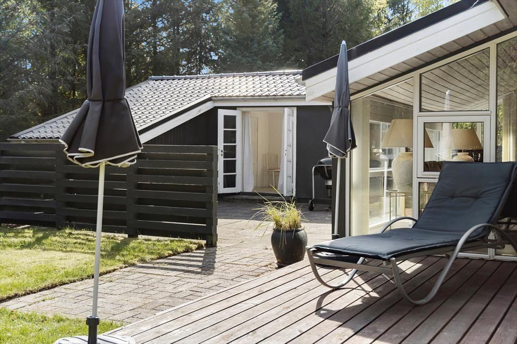 Når vejret tillader det – og det gør det ofte i Lyngså – flytter livet helt naturligt udenfor. Den store naturgrund indbyder til både leg og afslapning, og med den delvist overdækkede træterrasse har du altid et godt sted at slå dig ned. Her kan du nyde morgenmaden med fuglekvidder som baggrundsmusik, tage et spil kort i skyggen midt på dagen eller grille og nyde lange aftener under åben himmel. Det er også et ideelt sted at lade børnene løbe frit omkring, mens du nyder et glas vin og lyden af vinden i trætoppene. Der er en særlig frihed i at have så meget plads omkring sig – både for tobenede og firbenede feriegæster.