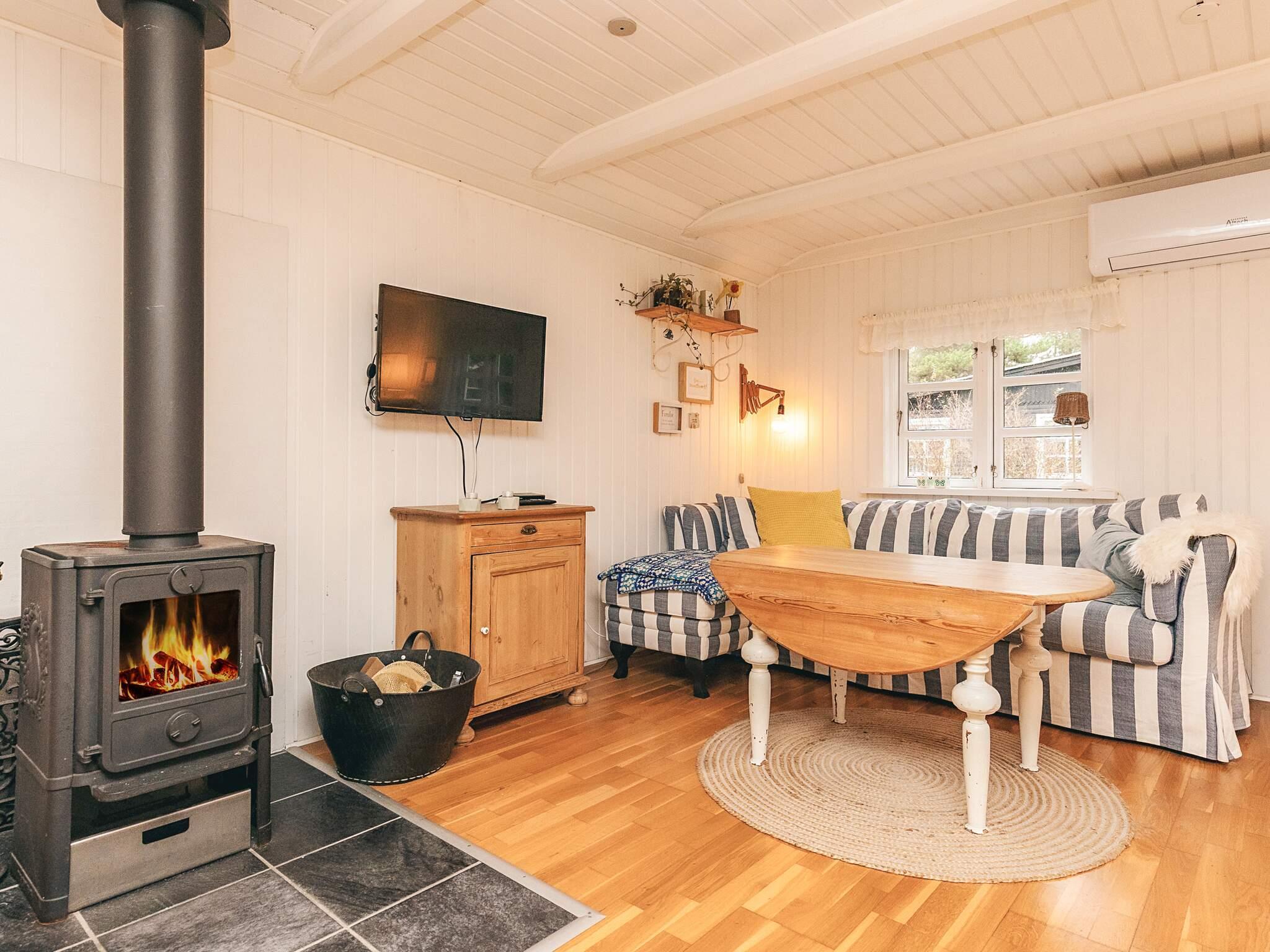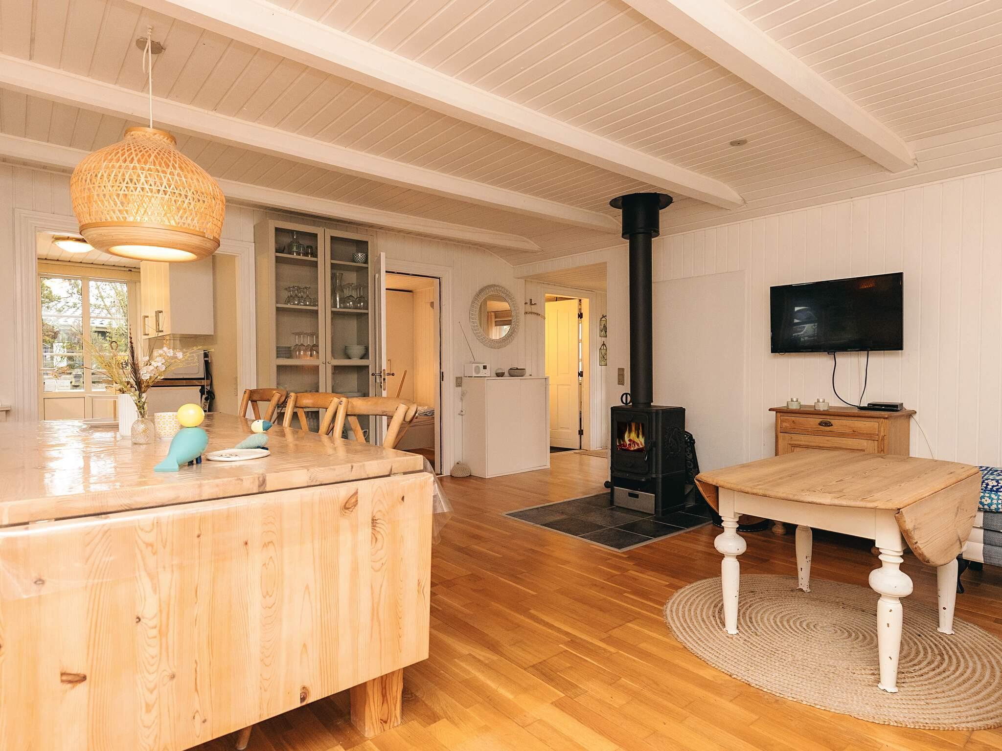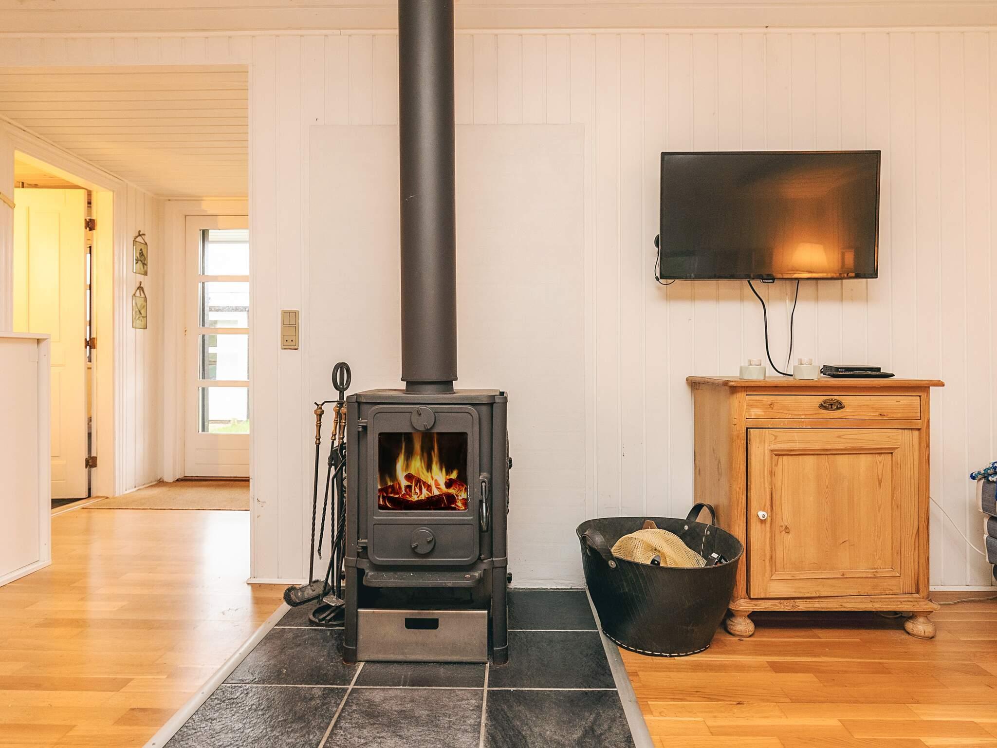 1 Opholdsstue: Brændeovn, dvd-afspiller, Chromecast, tv, høj stol