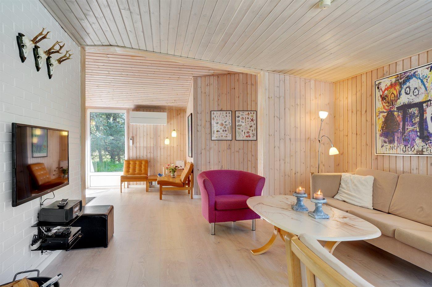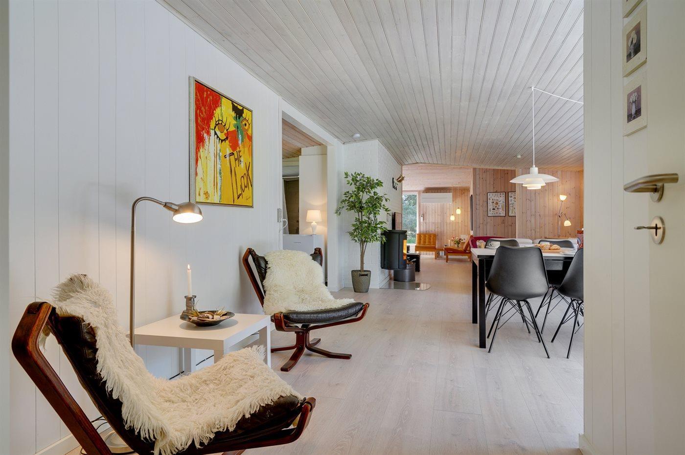 Sommerhuset egner sig til 8 personer samt 1 barn op til 3 år. Ferieboligen er på 110 m² og er bygget i 1966. I 1999 gennemgik ferieboligen en totalrenovering og i 2019 en delvis renovering med nyt badeværelse, gulv m.m. Ferieboligen er udstyret med energibesparende varmepumpe. Ferieboligen har vaskemaskine. Frysekapacitet på 110 liter. Der er desuden brændeovn. Til de små er der 1 stk. barnestol.