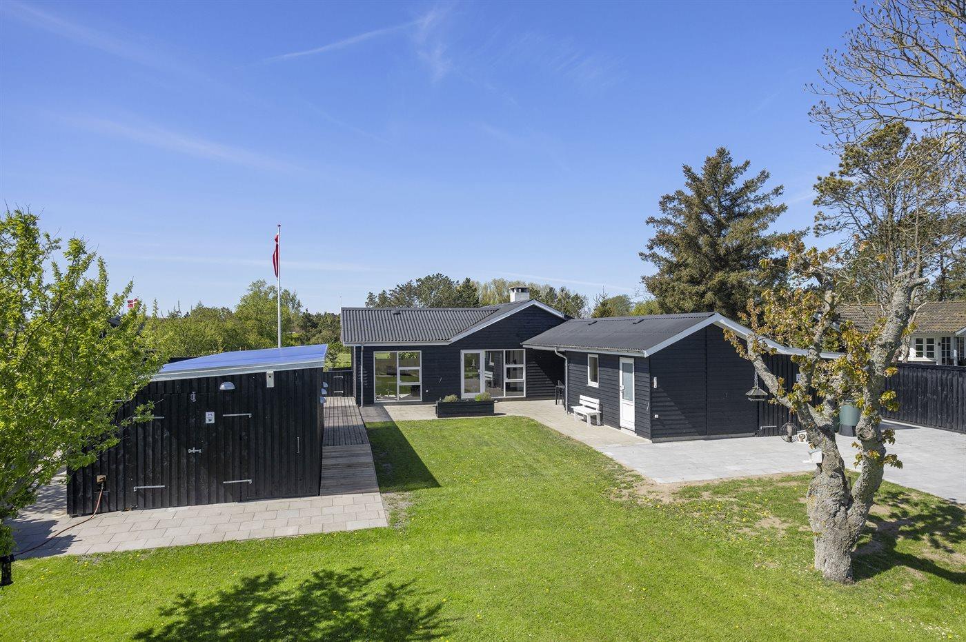 Ferieboligen er beliggende på en 1200 m² stor naturgrund. Der er 400 m til havet. Nærmeste forretning er beliggende i en afstand af 5280 m. Til ferieboligen hører åbent terrasseareal. Desuden er der overdækket terrasse. Grill til rådighed. Der er installeret stik til opladning af elbil. Type 2 stik. Med 11 kW ladeeffekt. Parkering ved ferieboligen.