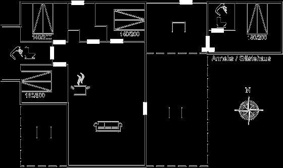 Der er i alt 4 soveværelser. Sovepladserne fordeler sig på: 8 sovepladser i dobbeltsenge. 2 af disse sovepladser befinder sig i et anneks. Derudover er der 1 stk. barneseng.