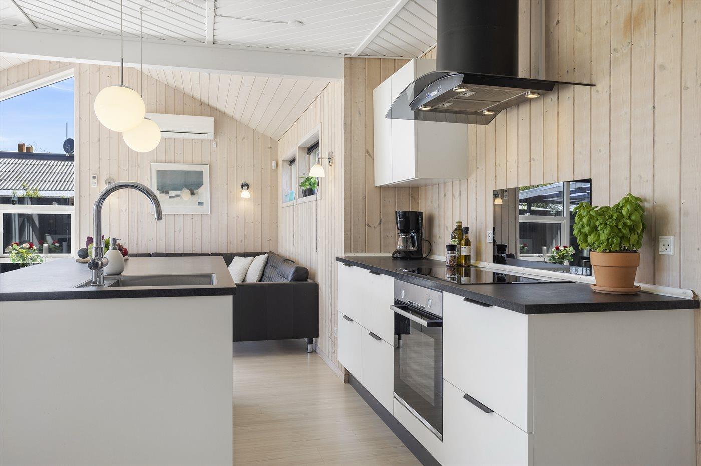 Køkkenet er udstyret med 1 køleskab. Der er 4 induktionskogeplader, varmluftovn, mikrobølgeovn samt opvaskemaskine.