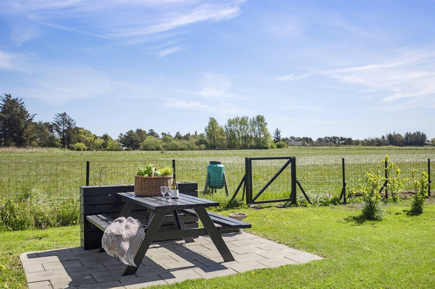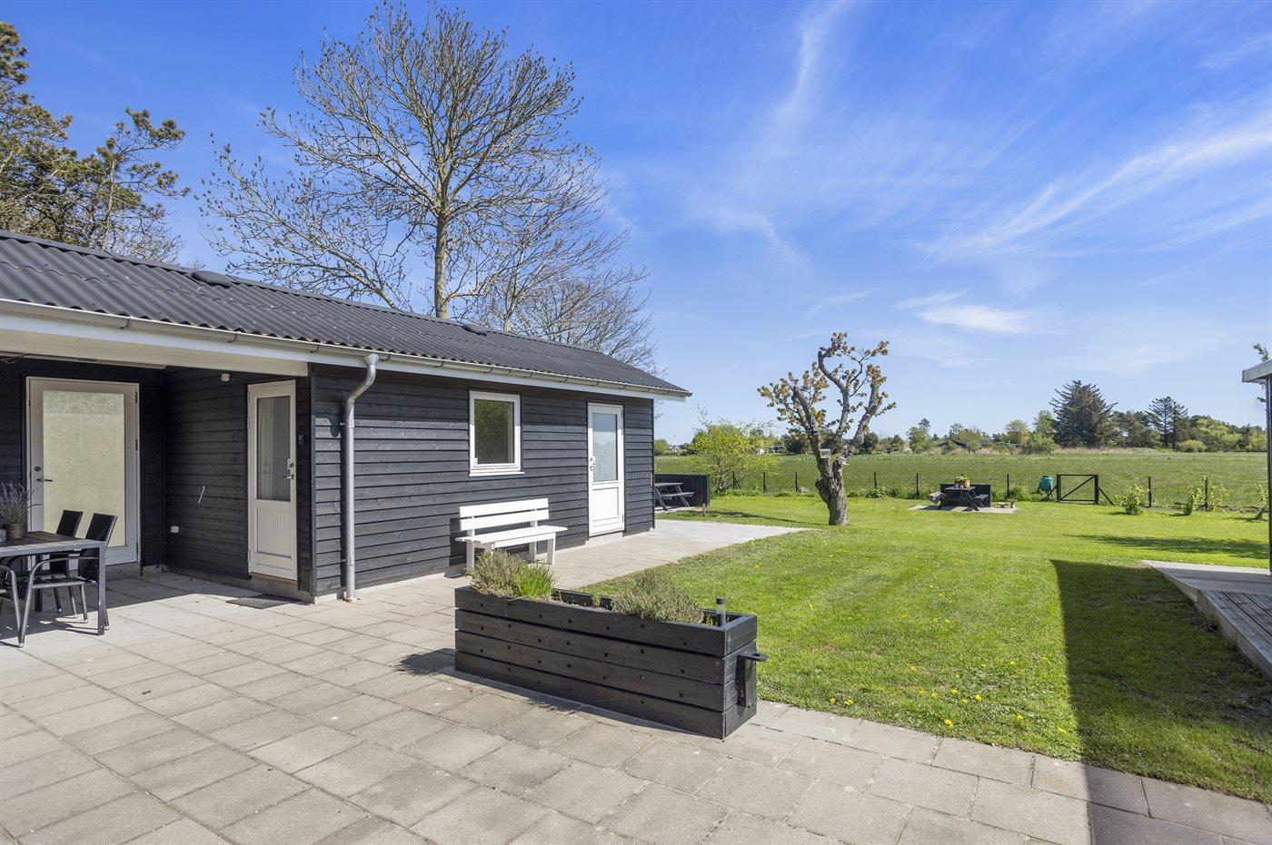 I udkanten af et roligt sommerhusområde, nær skøn børnevenlig badestrand, ligger dette pæne sommerhus på en delvis lukket grund med udsigt over de åbne marker, som grænser op til grunden og klitterne.