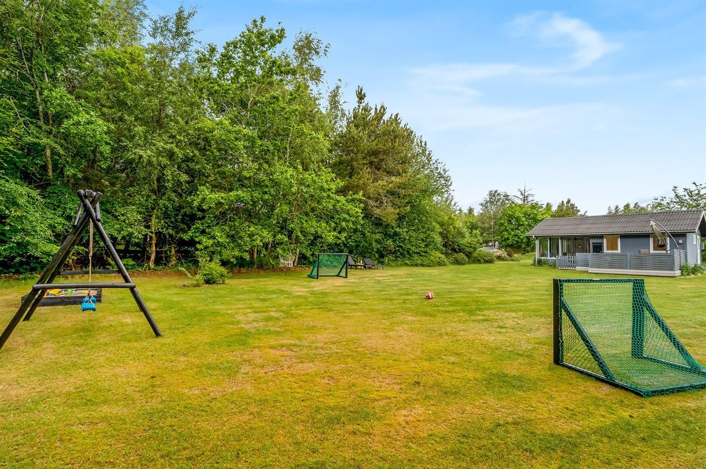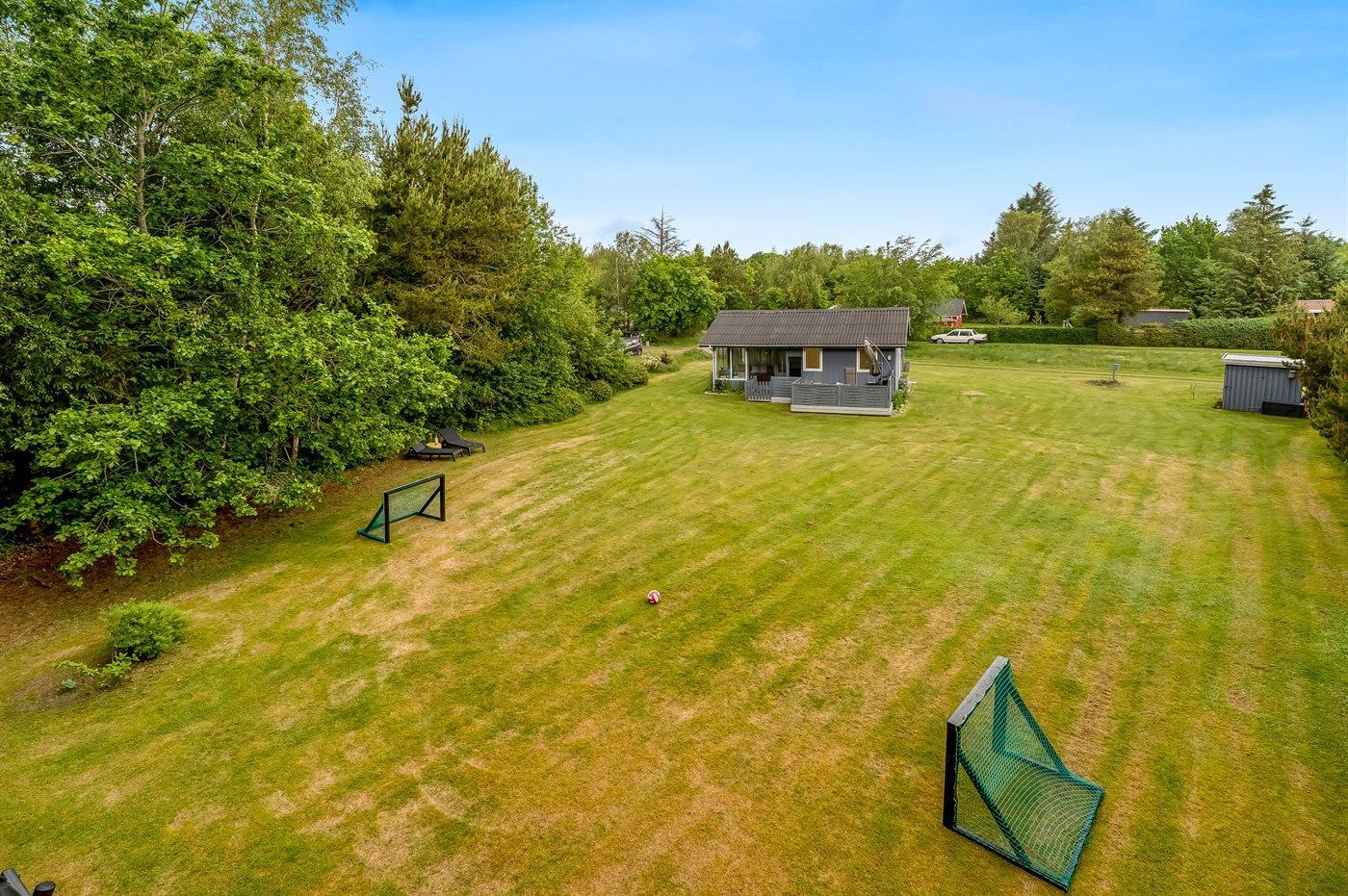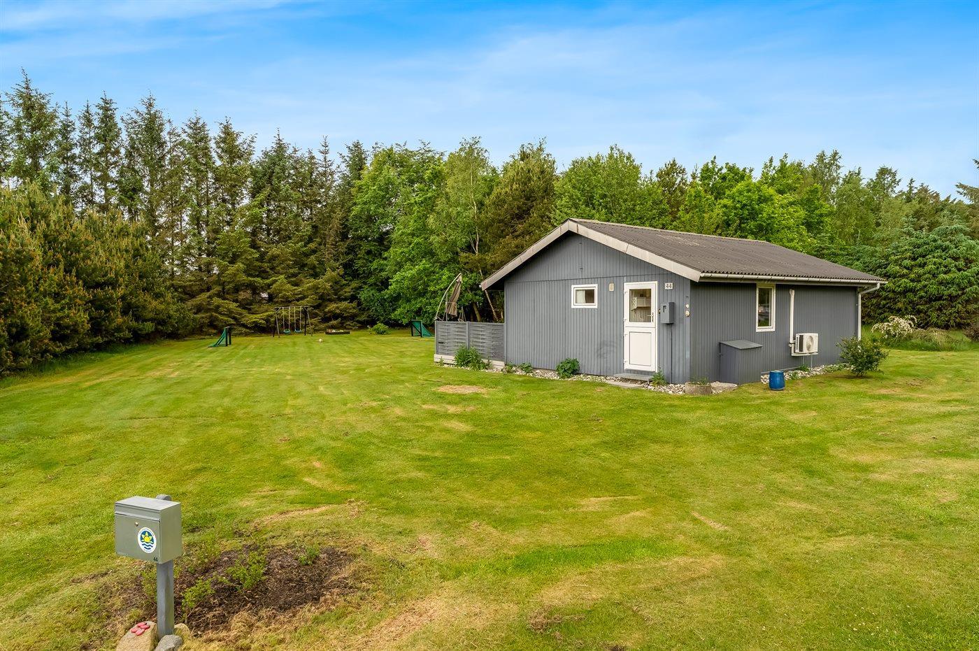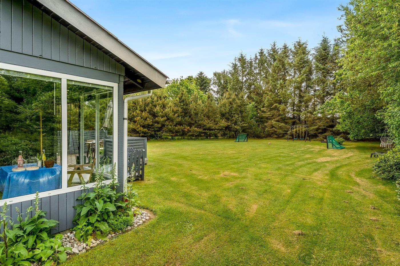 Ferieboligen er beliggende på en 1300 m² stor havegrund. Der er 800 m til havet. Nærmeste forretning er beliggende i en afstand af 6000 m. Der er en golfbane i en afstand af 11000 m. Til ferieboligen hører 21 m² terrasseareal. Desuden er der 10 m² overdækket terrasse. Heraf i alt 21 m² lukket terrasse. Gynge/sansegynge. Sandkasse. Grill til rådighed. Parkering ved ferieboligen.