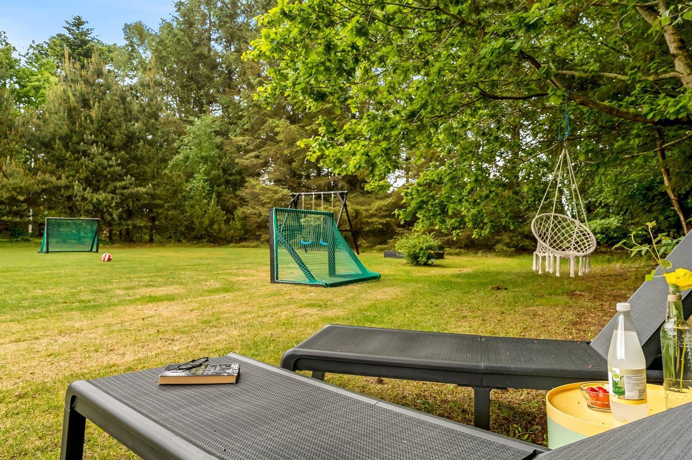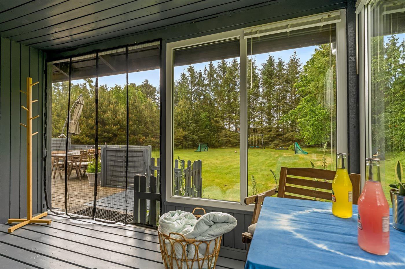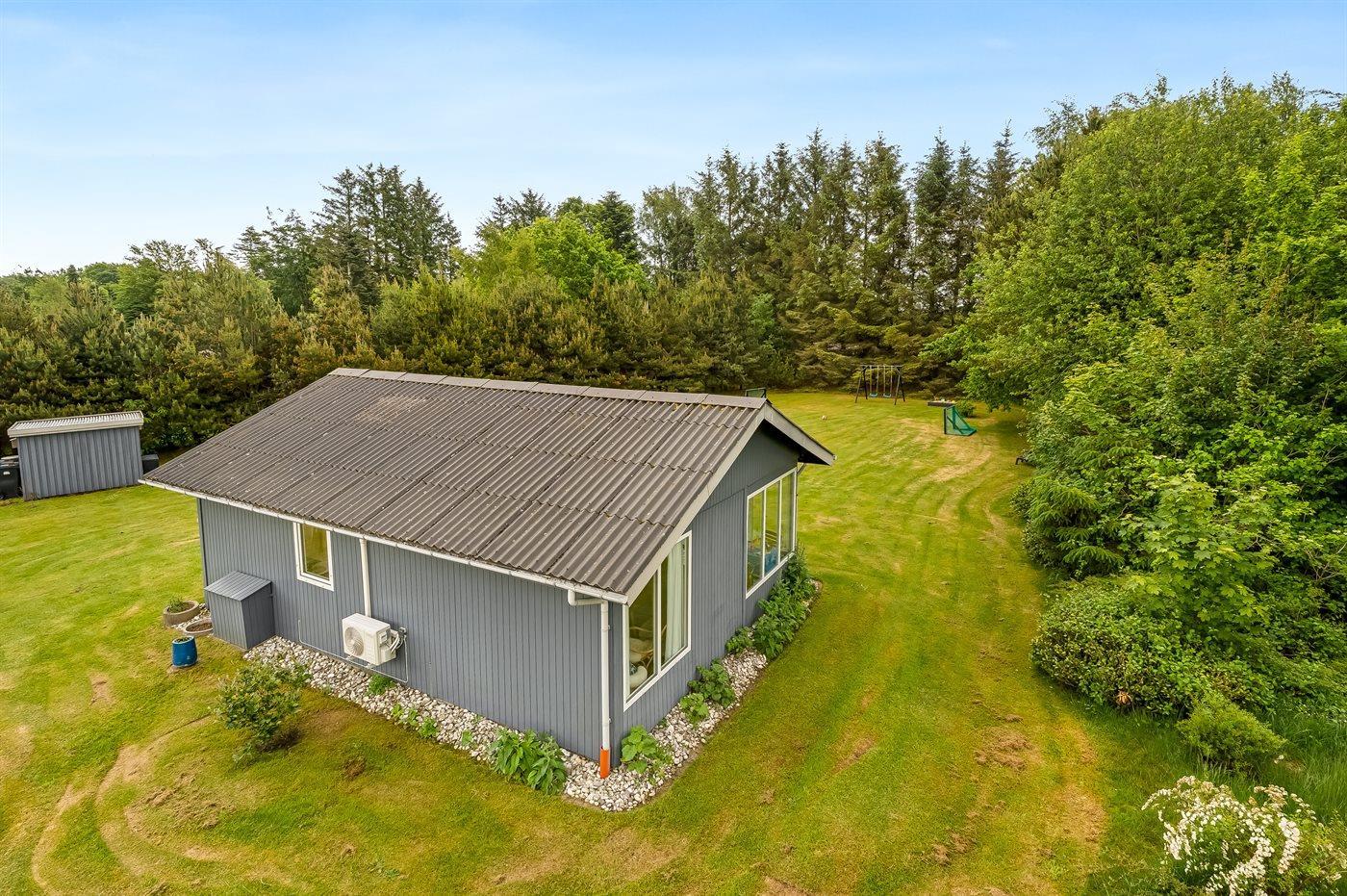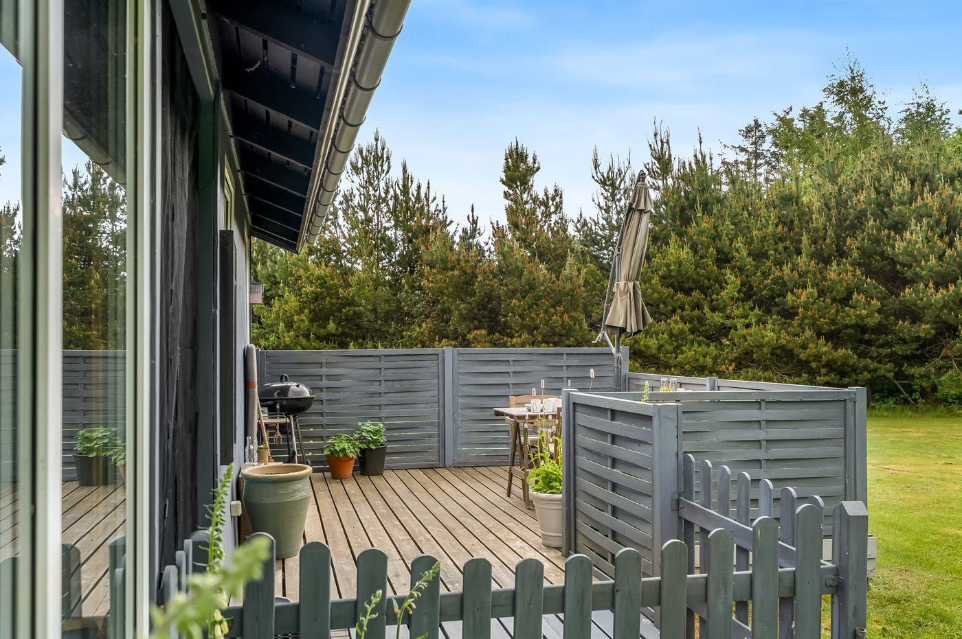Ferieboligen er beliggende på en 1300 m² stor havegrund. Der er 800 m til havet. Nærmeste forretning er beliggende i en afstand af 6000 m. Der er en golfbane i en afstand af 11000 m. Til ferieboligen hører 21 m² terrasseareal. Desuden er der 10 m² overdækket terrasse. Heraf i alt 21 m² lukket terrasse. Gynge/sansegynge. Sandkasse. Grill til rådighed. Parkering ved ferieboligen.