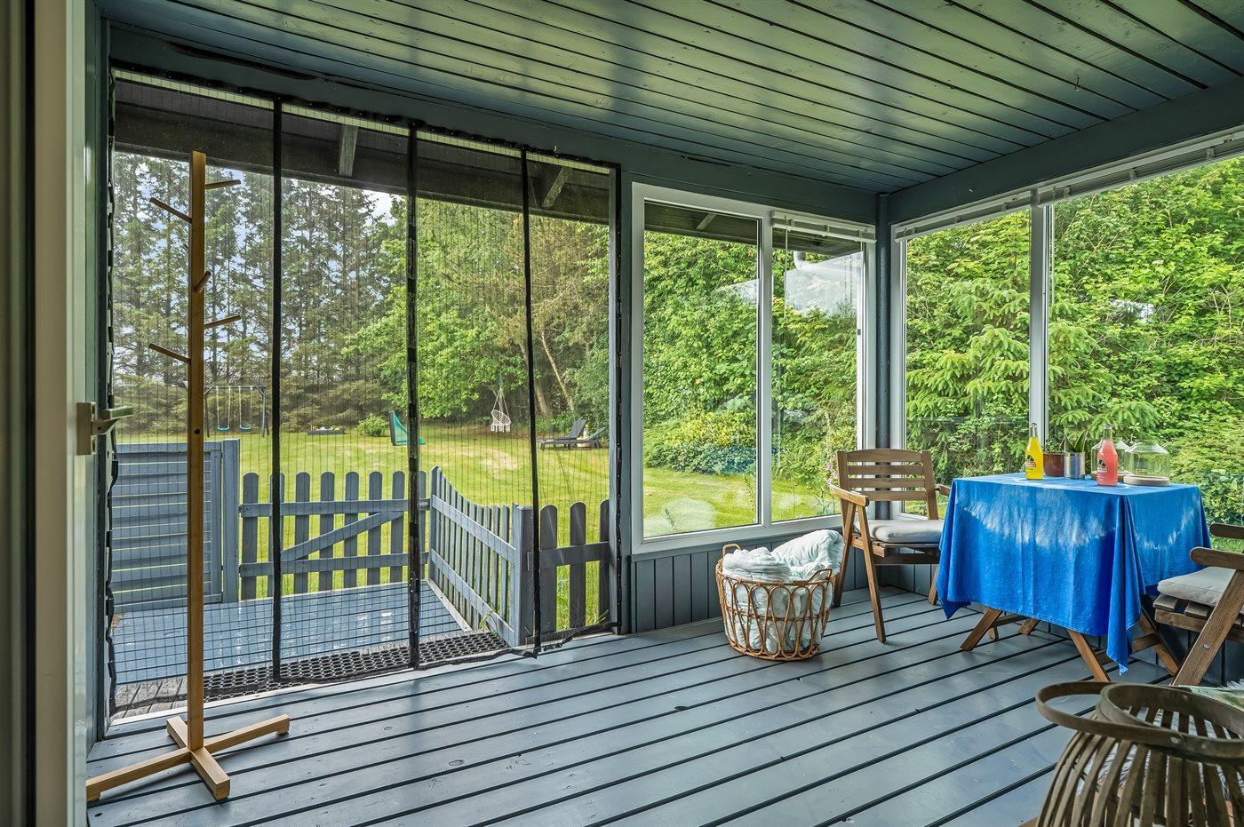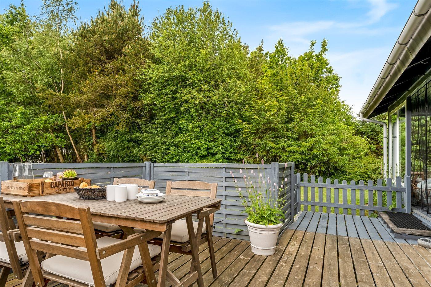 Dette lille, hyggeligt indrettede sommerhus er beliggende i naturskønne omgivelser - på en skøn og delvist afskærmet grund. Til huset hører gode, delvist overdækkede terrasser.