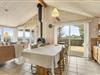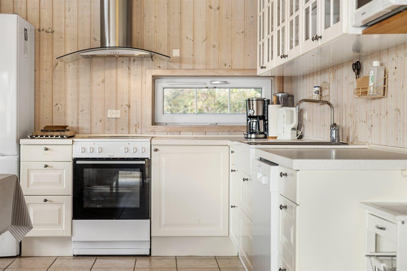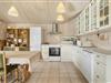 Køkkenet er udstyret med 1 køleskab. Der er 4 keramiske kogeplader, bageovn, mikrobølgeovn samt opvaskemaskine.