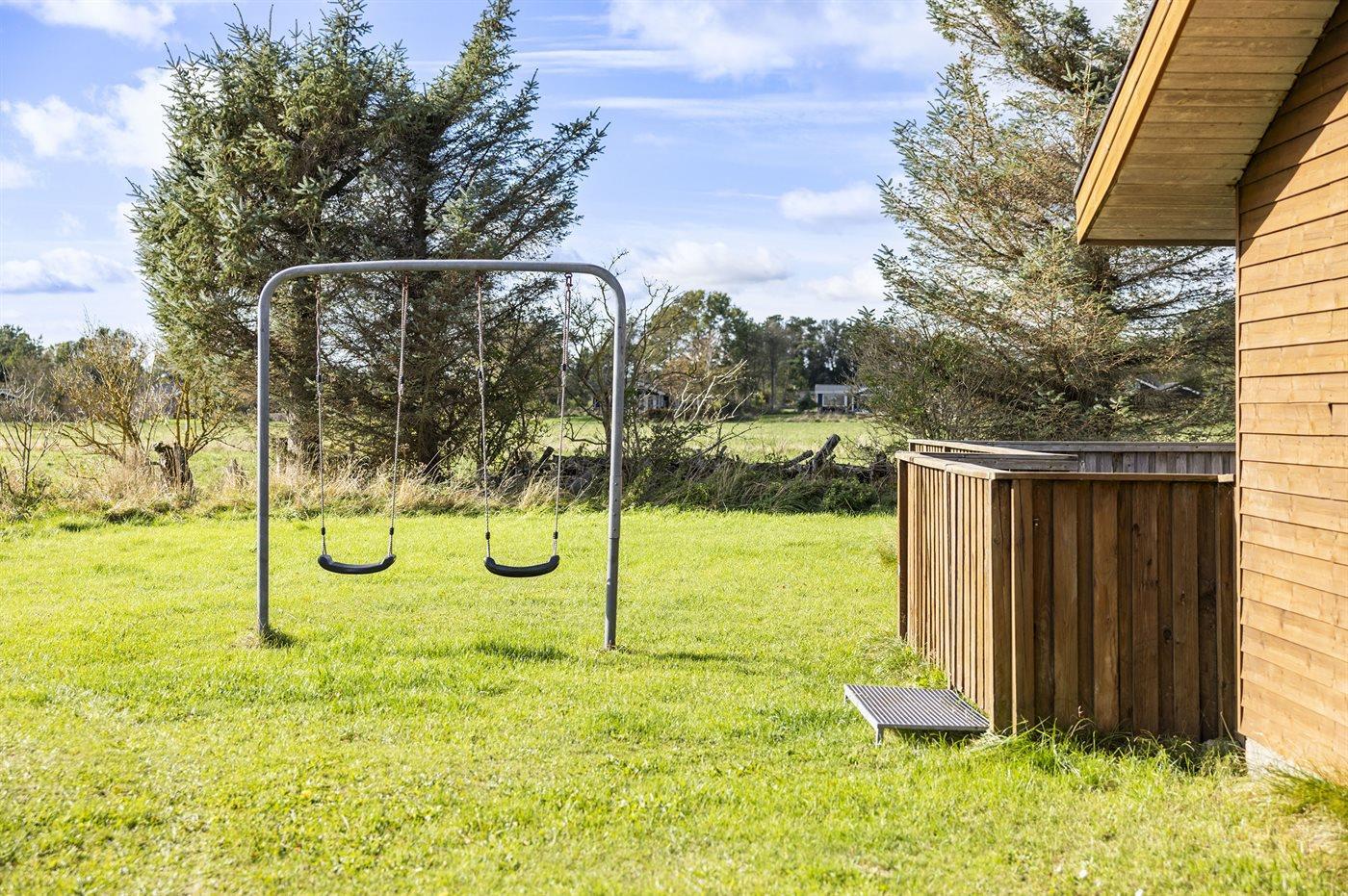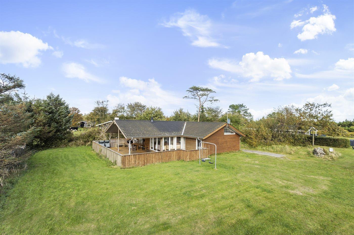 Ferieboligen er beliggende på en 1200 m² stor naturgrund. Der er 250 m til havet. Nærmeste forretning er beliggende i en afstand af 8000 m. Til ferieboligen hører åbent terrasseareal. Desuden er der overdækket terrasse. Gynge. Sandkasse. Der ligger en legeplads i en afstand af 400 m. Parkering ved ferieboligen.