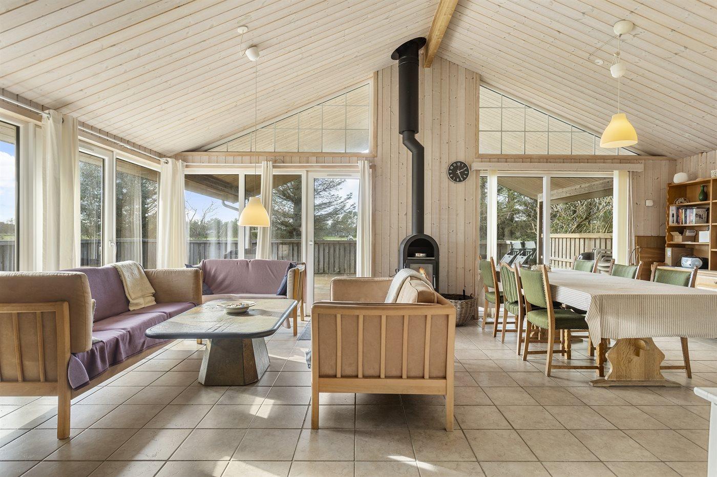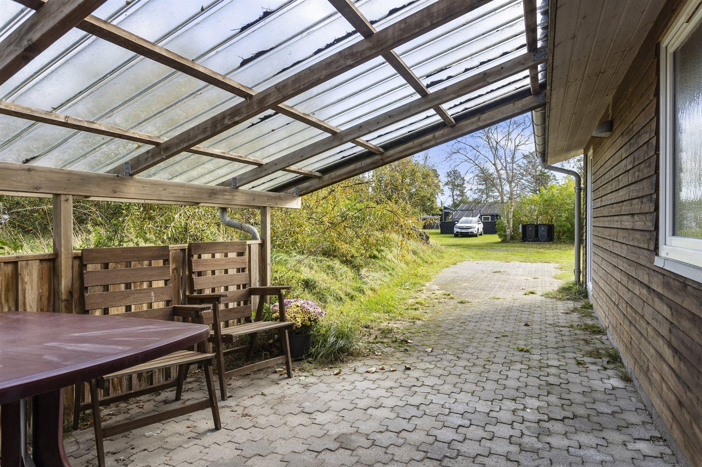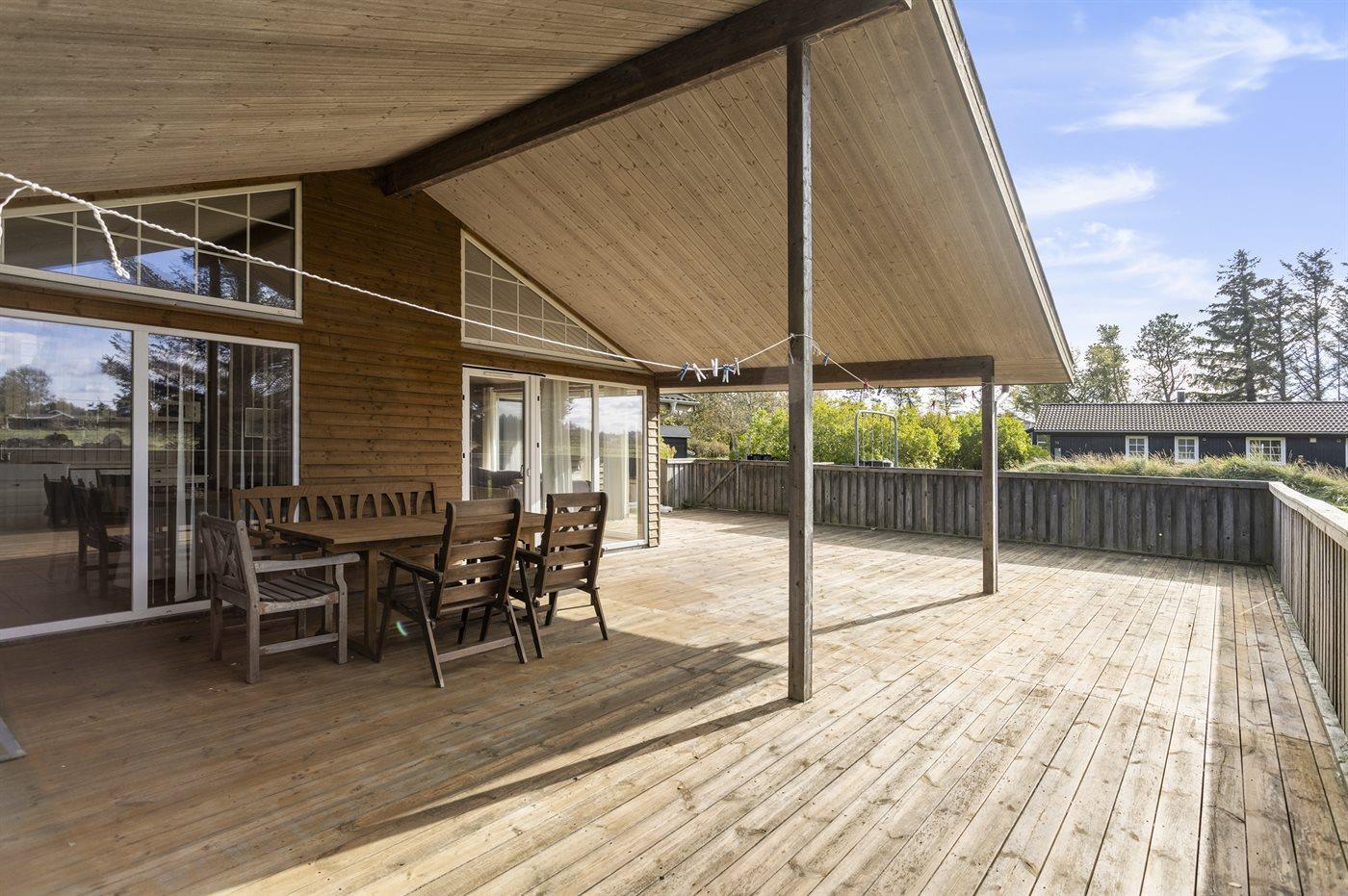 Sommerhuset er godt indrettet og her er god plads til en ferie med hele familien inklusive bedsteforældre. Udvendig findes et skønt terrasseareal, som er delvist overdækket.