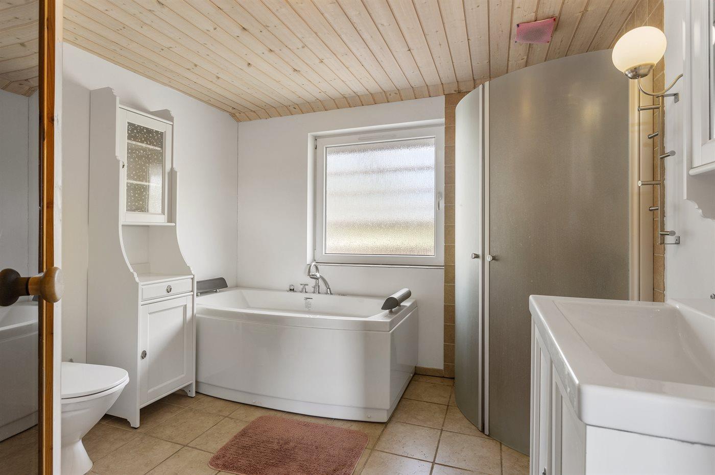 Der er 1 badeværelse med bruseniche og 2 toiletter, heraf 1 gæstetoilet. Der er gulvvarme på 1 badeværelse. Der er gulvvarme på gæstetoilettet. I saunaen er der mulighed for afslapning.