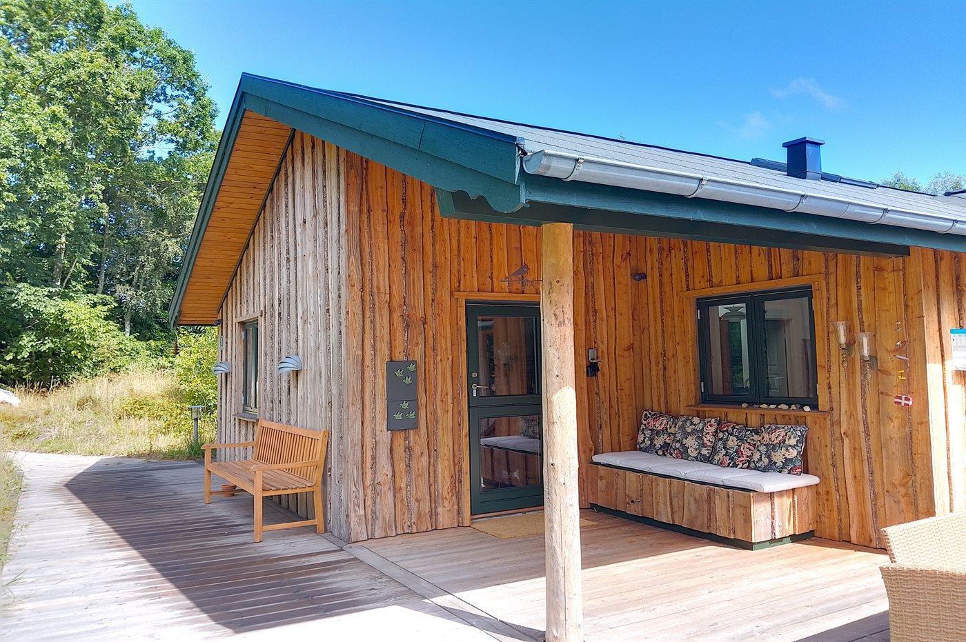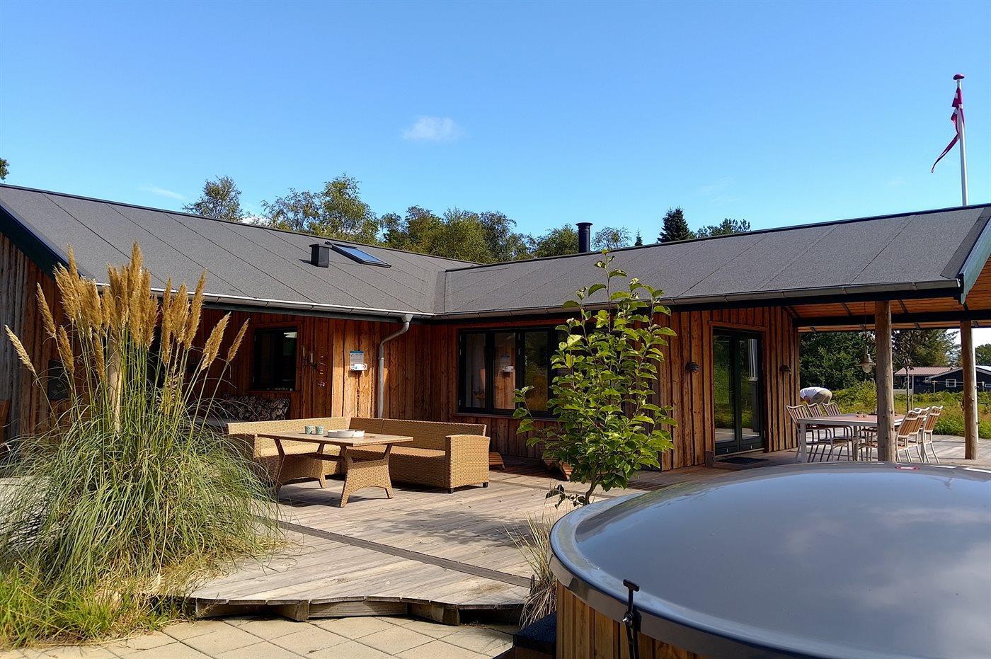 Moderne sommerhus i Lyngså med vildmarkskar, stor terrasse og elbiloplader i naturskønne omgivelser.