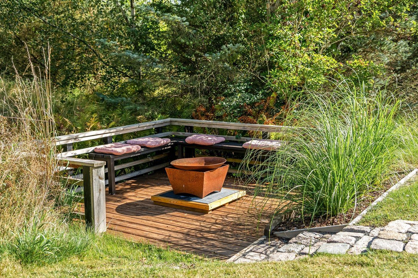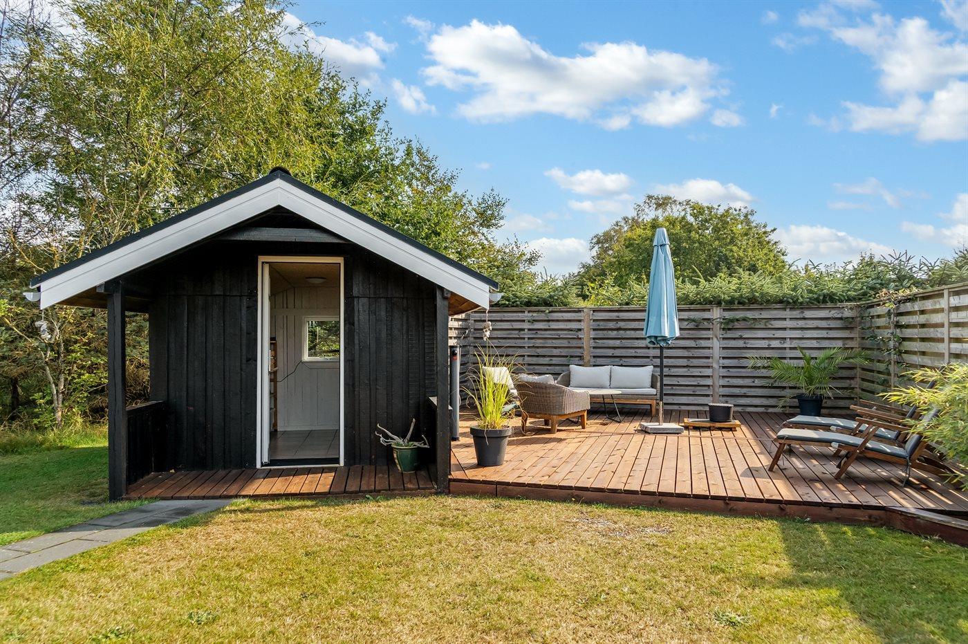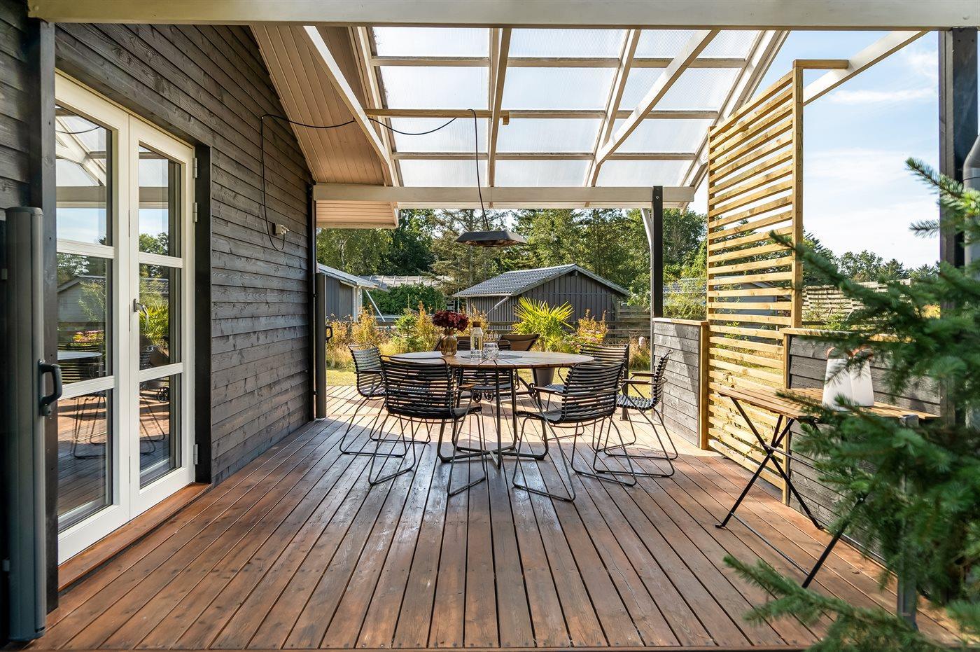 Huset er omgivet af flere dejlige terrasser, både åbne og overdækkede, således du altid kan finde sol, skygge eller læ, alt efter behov og vejr.