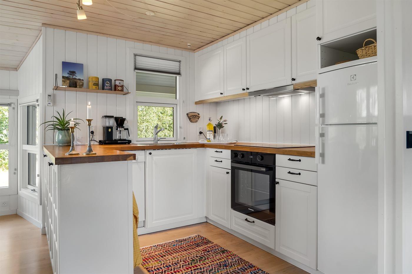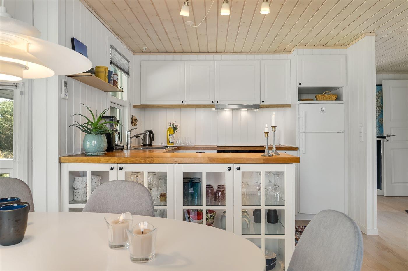 Køkkenet er udstyret med 2 køleskabe. Der er 4 keramiske kogeplader, varmluftovn, mikrobølgeovn samt opvaskemaskine.