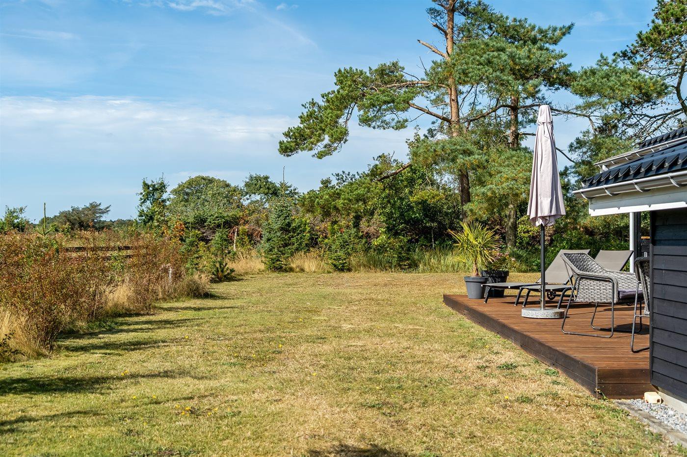 Ferieboligen er beliggende på en 1229 m² stor havegrund. Grunden er indhegnet. Der er 880 m til havet. Nærmeste forretning er beliggende i en afstand af 6000 m. Der er en golfbane i en afstand af 11000 m. Til ferieboligen hører åbent terrasseareal. Desuden er der overdækket terrasse. Bålsted. Grill til rådighed. Der er installeret stik til opladning af elbil. Type 2 stik. Med 11 kW ladeeffekt. Parkering ved ferieboligen.