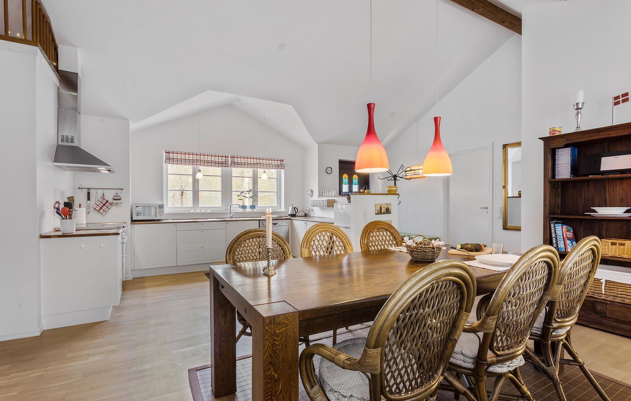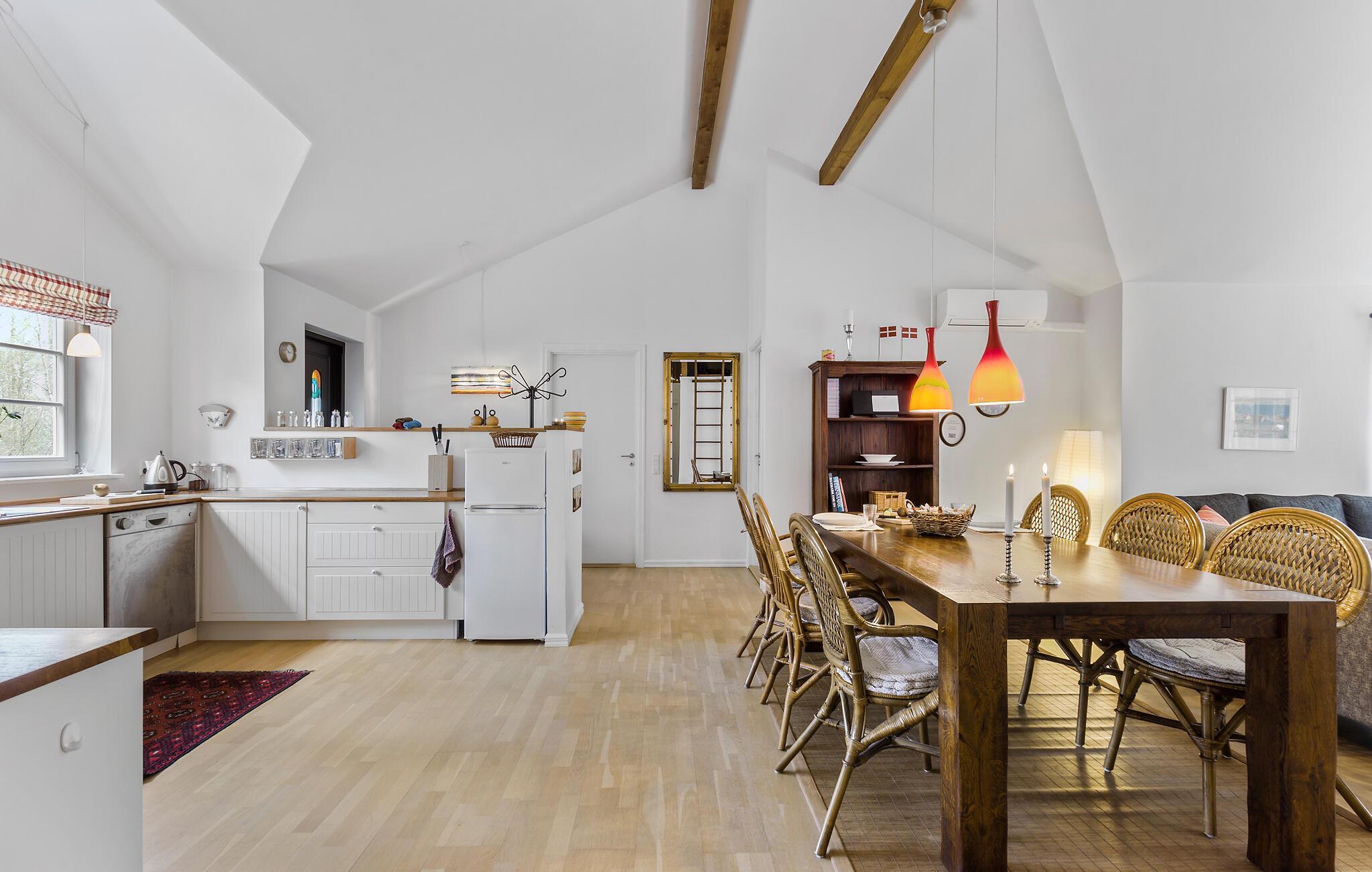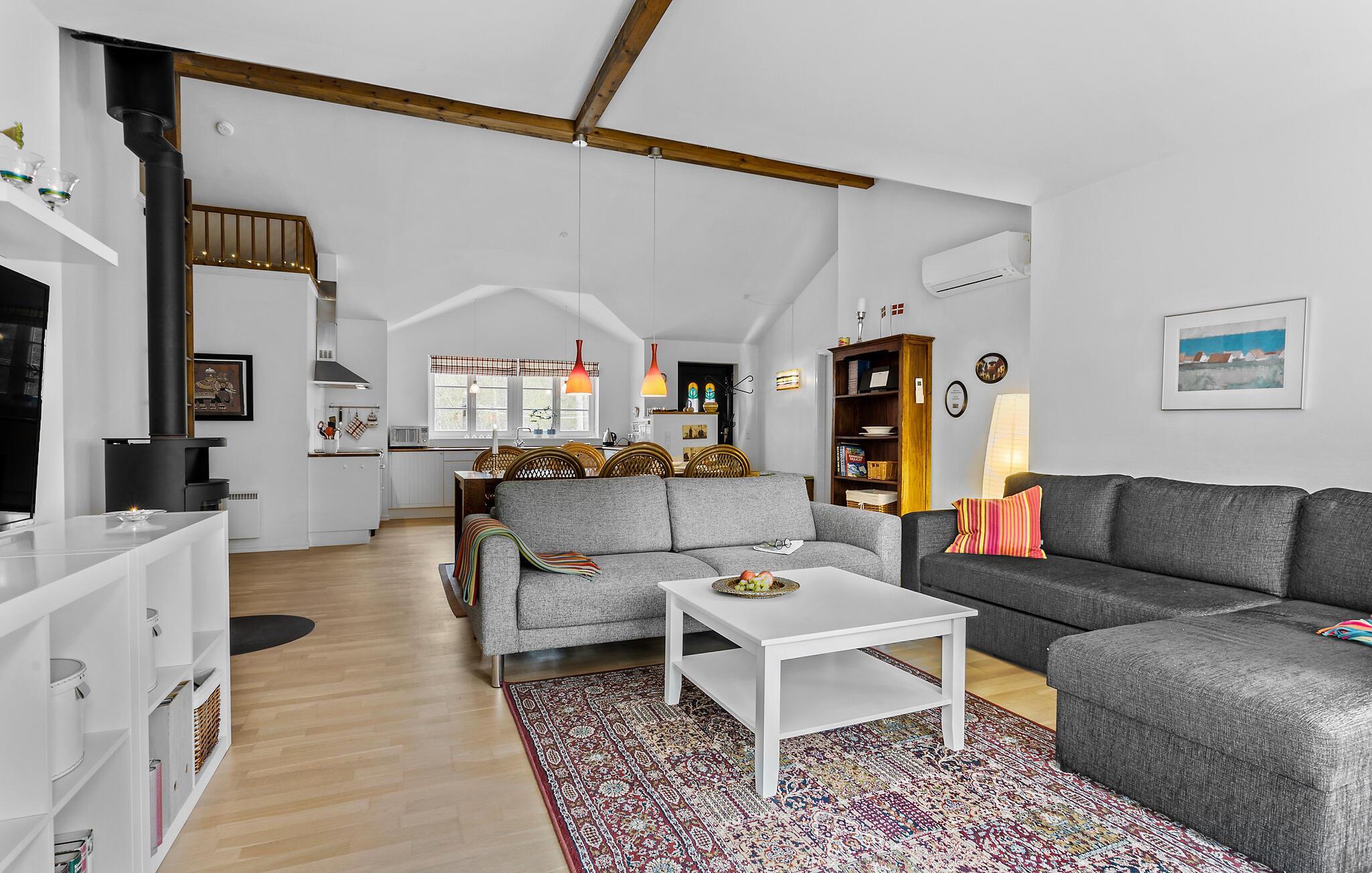 I det nordlige Jylland, tæt på Kattegat og på en stor og ugeneret grund, finder I dette indbydende træhus til en vidunderlig ferie med familien. Huset er ganske rummeligt og byder på fine indretningsløsninger, gode møbler og et rummeligt, veludstyret køkken, hvor madlavningen kan gøres til et sjovt fællesprojekt. Tænd op i brændeovnen på de køligere dage og dæk op til den store middag ved spisebordet, inden I runder aftenen af med brætspil eller en god film i sofaen.