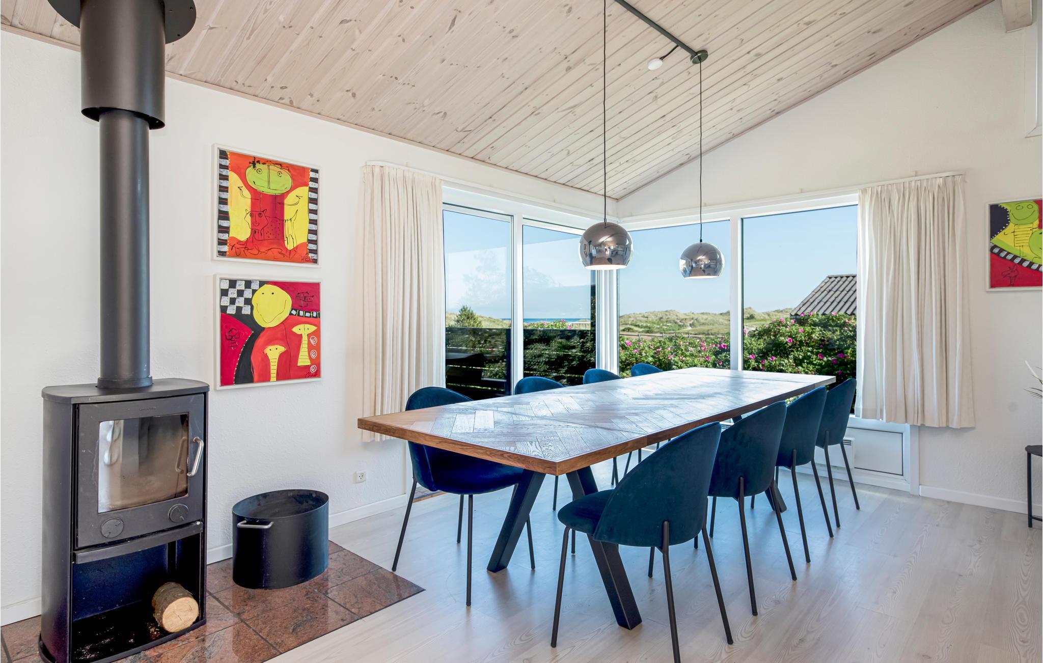 Bag yderste klitrække ligger dette dejlige feriehus. Huset ligger for enden af lukket vej, og har direkte adgang til en af Nordjyllands bedste badestrande. Stranden er sandstrand, børnevenlig og bred. Der er en skøn havudsigt fra stuerne og terrassen, hvor du kan sidde og nyde lyden af havets brusen. De fine terrasser mod både øst og vest giver gode muligheder for udeliv fra tidligt til sent. Tag eksempelvis en dukkert i havet, og efterfølgende en tur i huset sauna. Huset har pæne møbler og fremtræder lyst og indbydende med loft til kip. Der er indlagt højhastighed internet og Wifi, samt smart tv. Fra huset er der ikke langt til den gamle havneby Sæby med den aktive havn og hyggelige midtby.