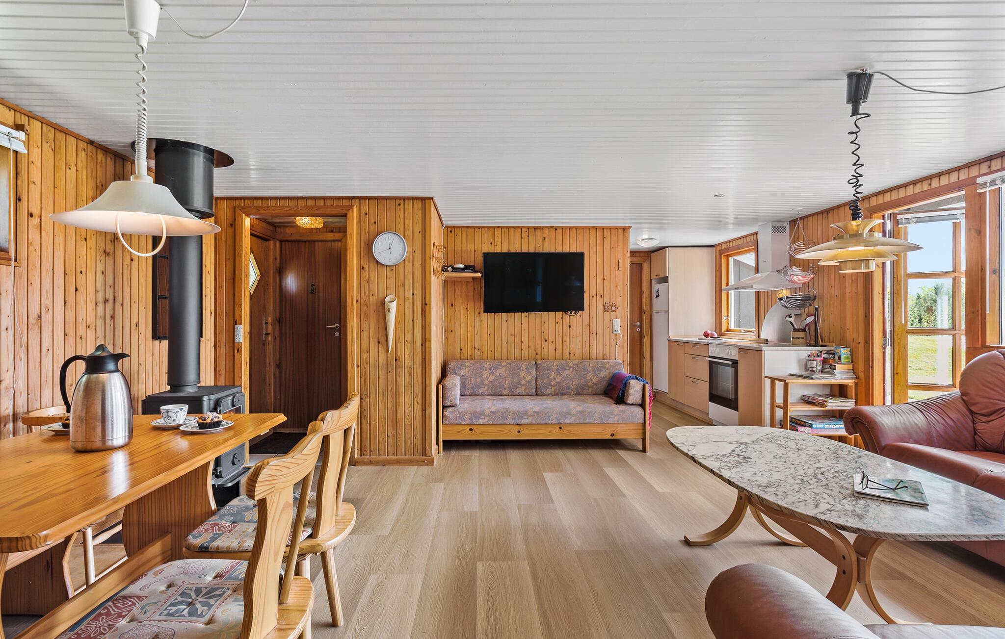 Hele familien kan se frem til en hyggelig ferie på den nordjyske østkyst! I Lyngså finder I nemlig dette skønne sommerhus, som emmer af varme og nostalgi med sine gyldne trævægge, brændeovnen og de klassiske indretningsløsninger. Der er en behagelig udsigt over den grønne have fra opholdsrummet, hvor I kan slappe af og sætte jer med en kop kaffe efter dagens udflugter.