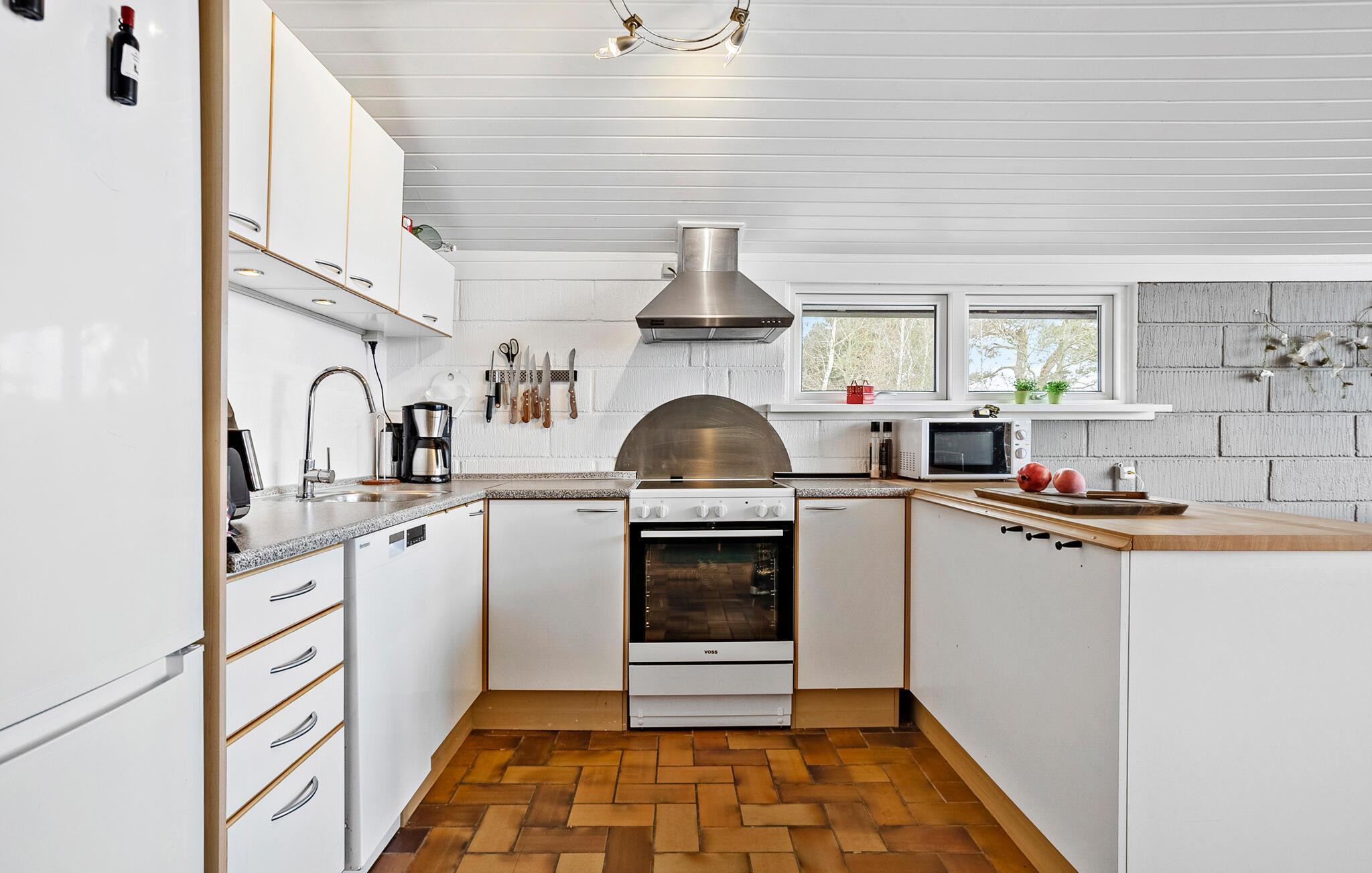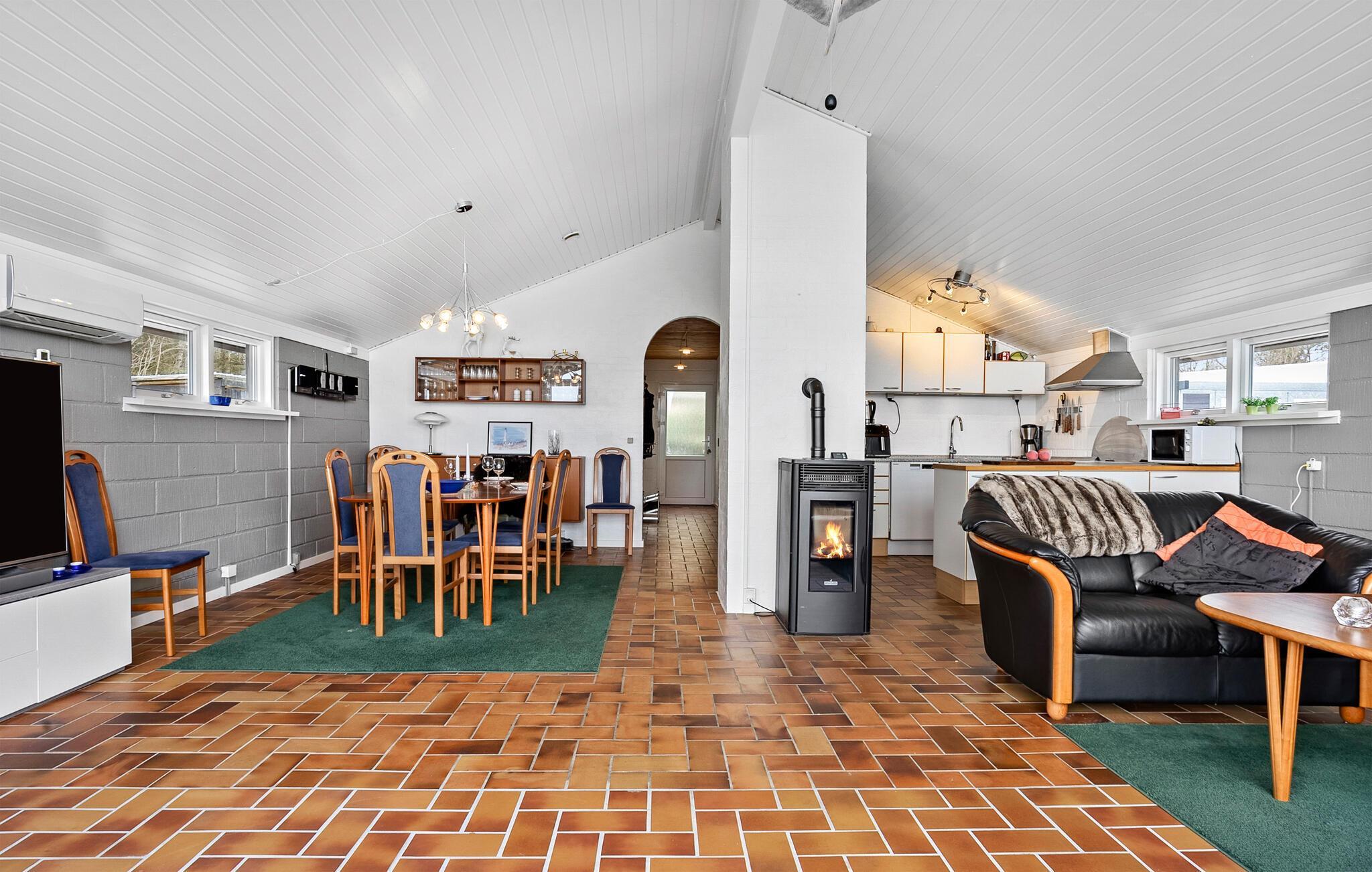 I kan se frem til nogle herlige dage, hvor I får jeres base i dette hyggelige sommerhus, som ligger i kort afstand fra Lyngsås smukke sandstrand. Her bor I ud til et roligt landskab med udsigt over åbne marker, så her kan I virkelig sætte hverdagen på pause. Boligen har et varmt og klassisk udtryk med masser af lys fra de store vinduer. I det veludstyrede køkken er der alt, hvad I skal bruge for at gøre klar til feriens måltider. Opholdsstuen har et indbydende sofahjørne med lænestole og brændeovn, hvor I kan sætte jer til rette efter dagens eventyr. Sæt jer med en spændende film eller læs en god bog.