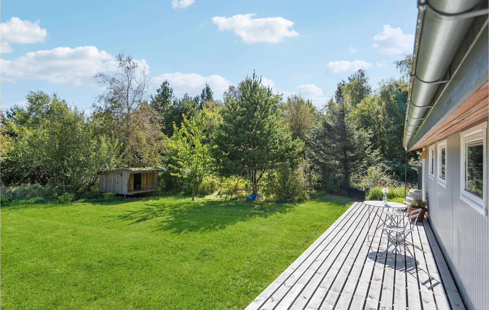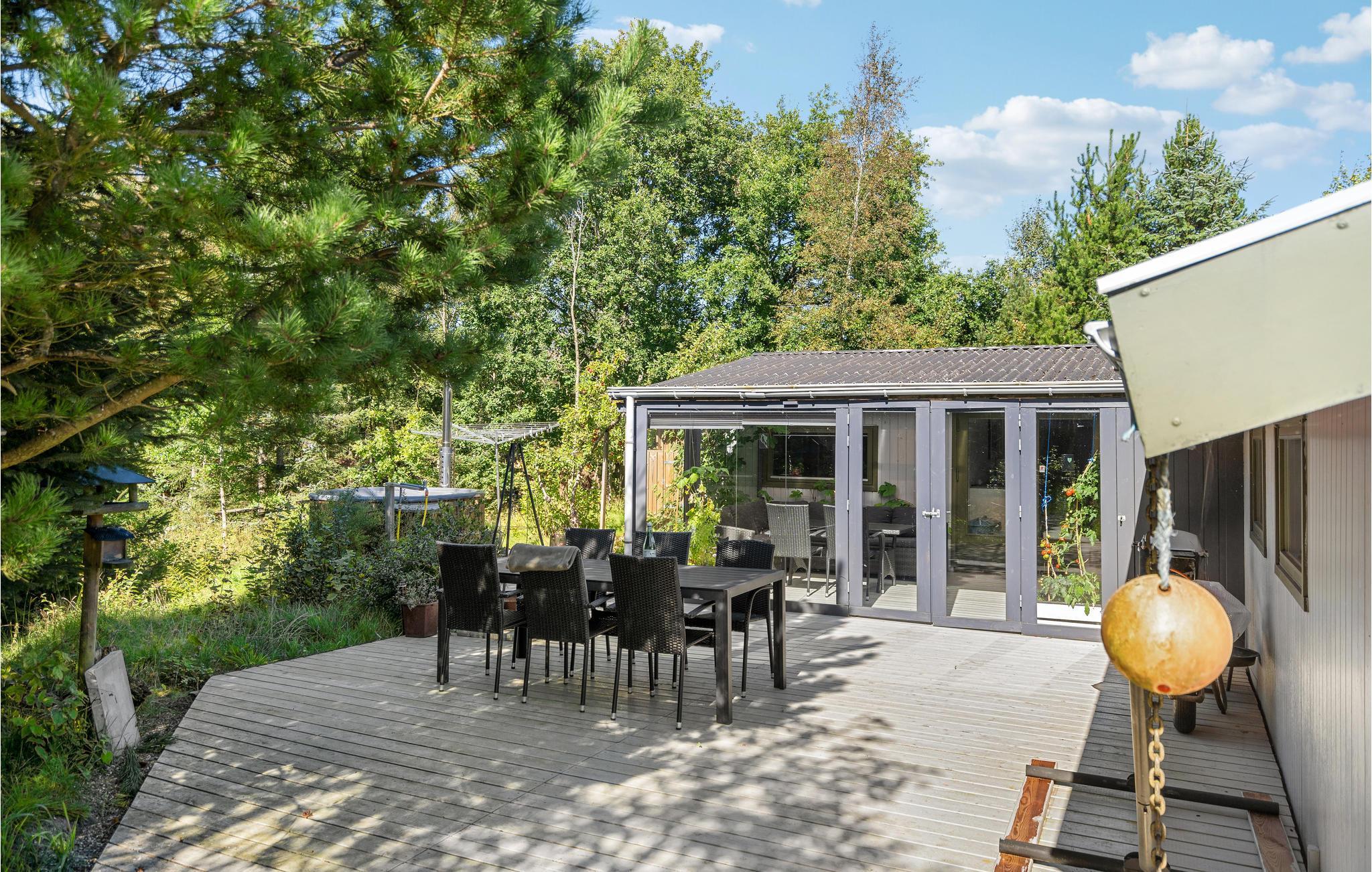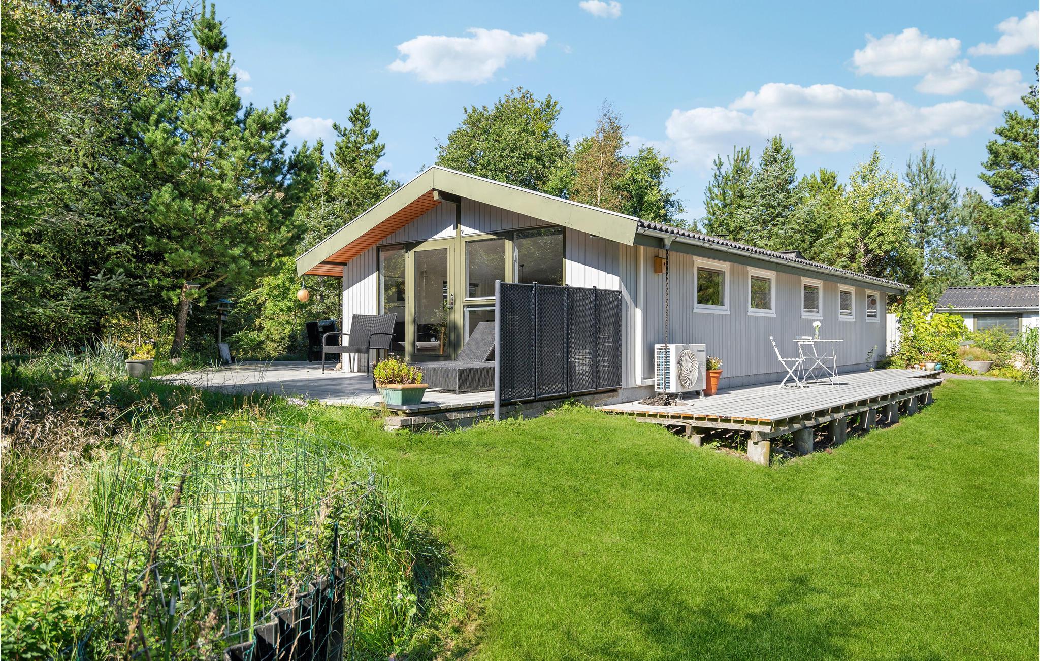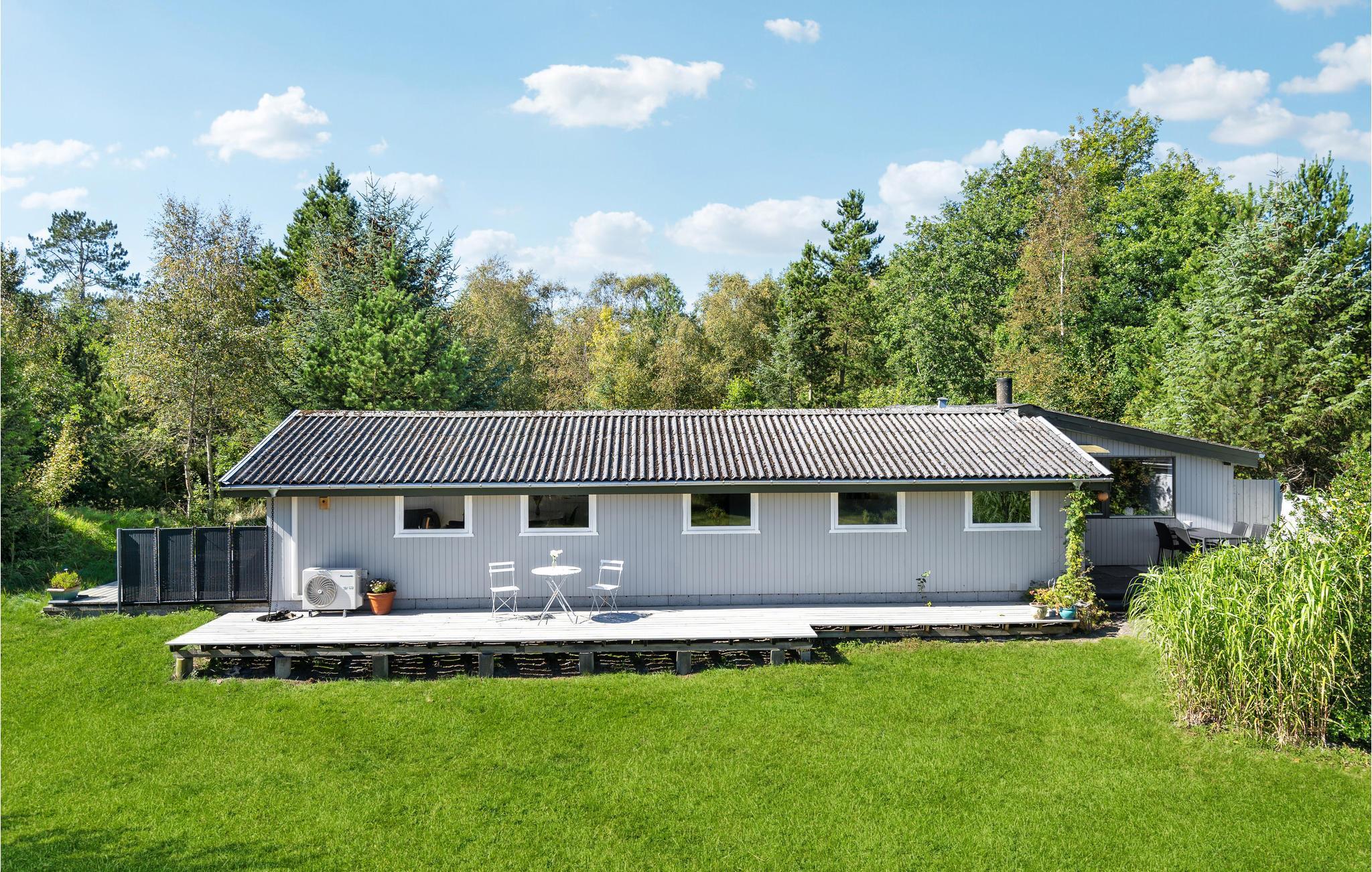 Charmerende feriehus i Lyngså med stor terrasse og vildmarksbad nær Kattegats smukke strand.