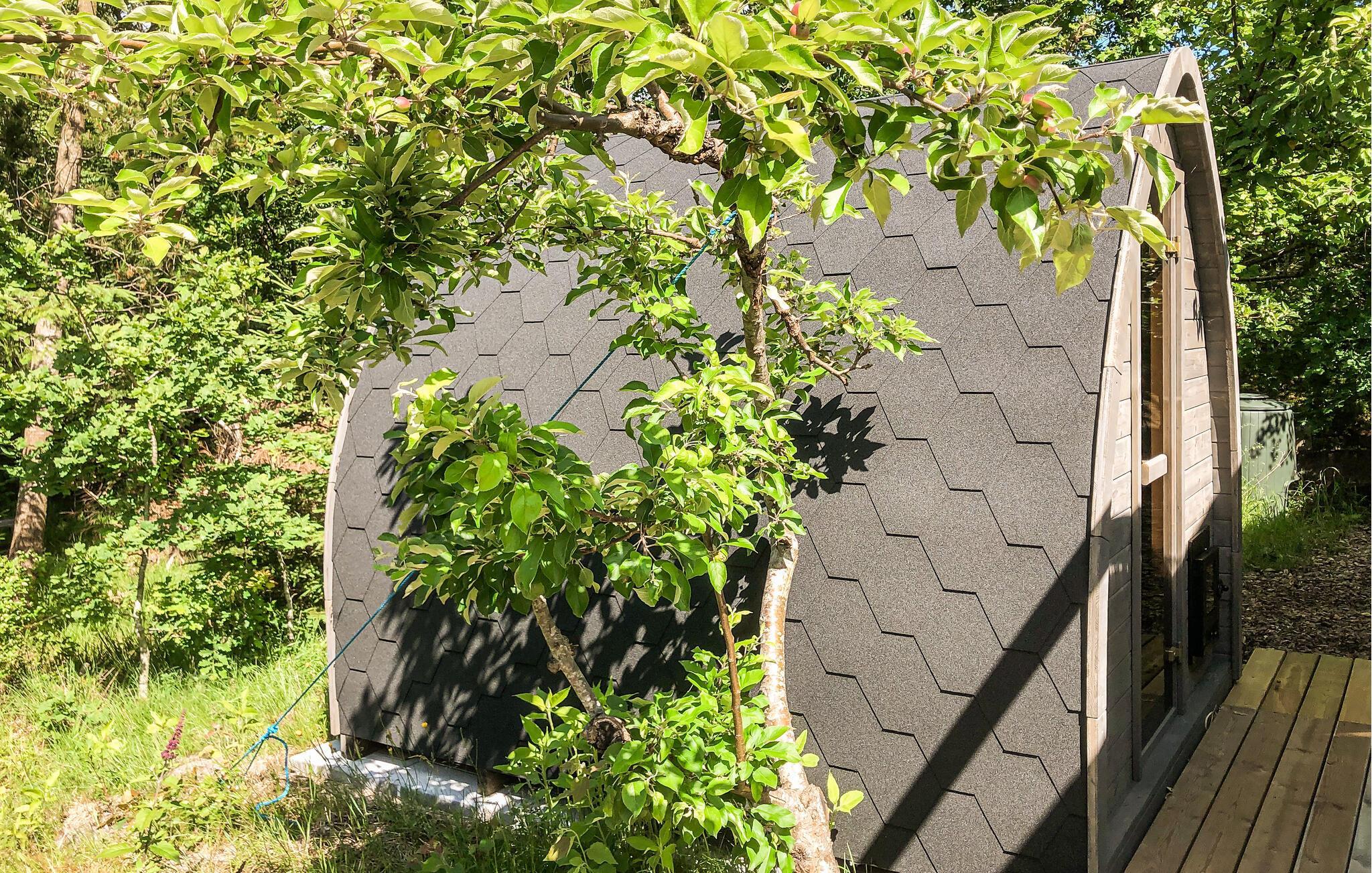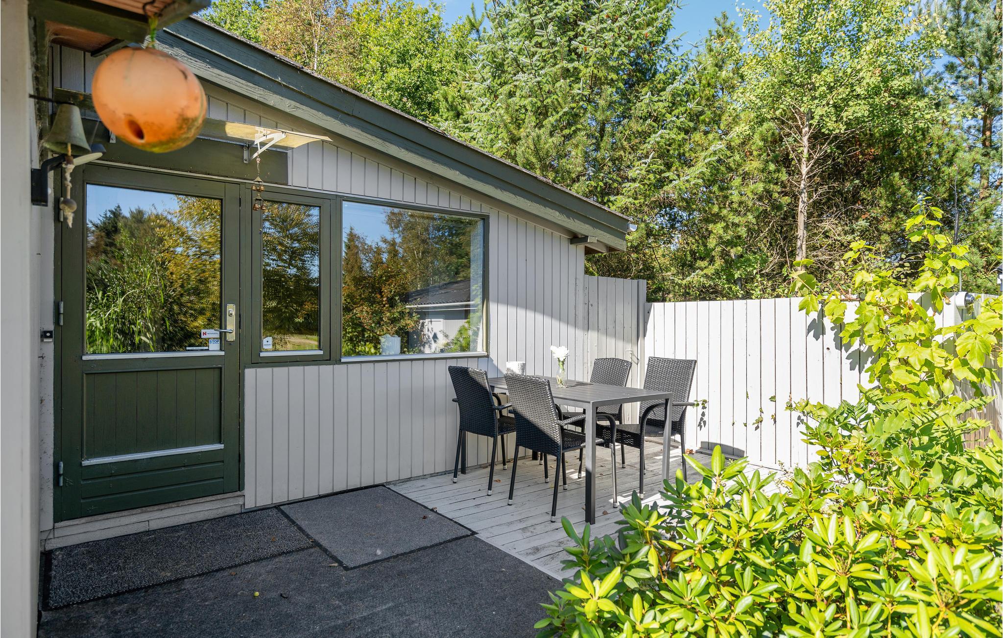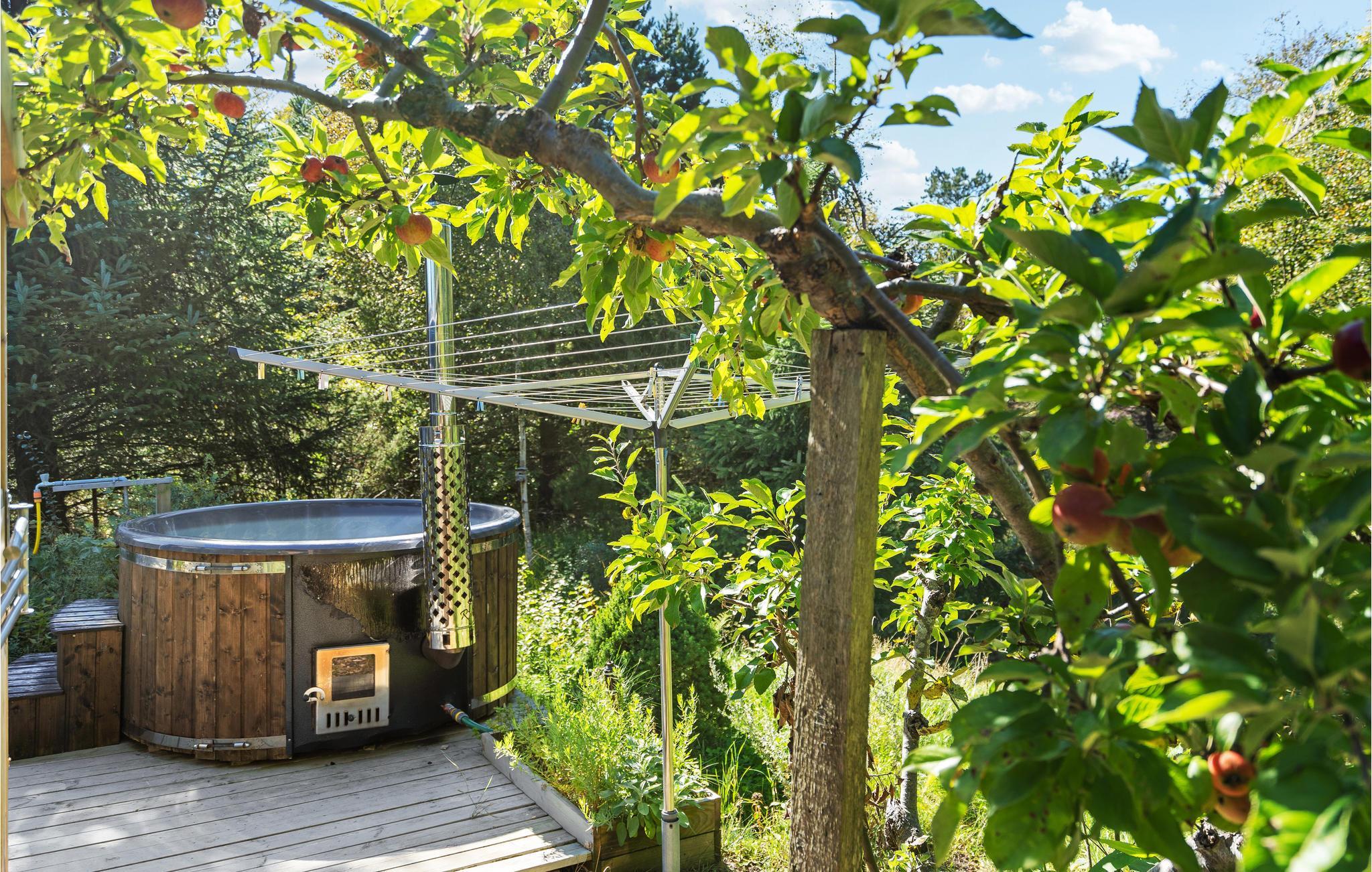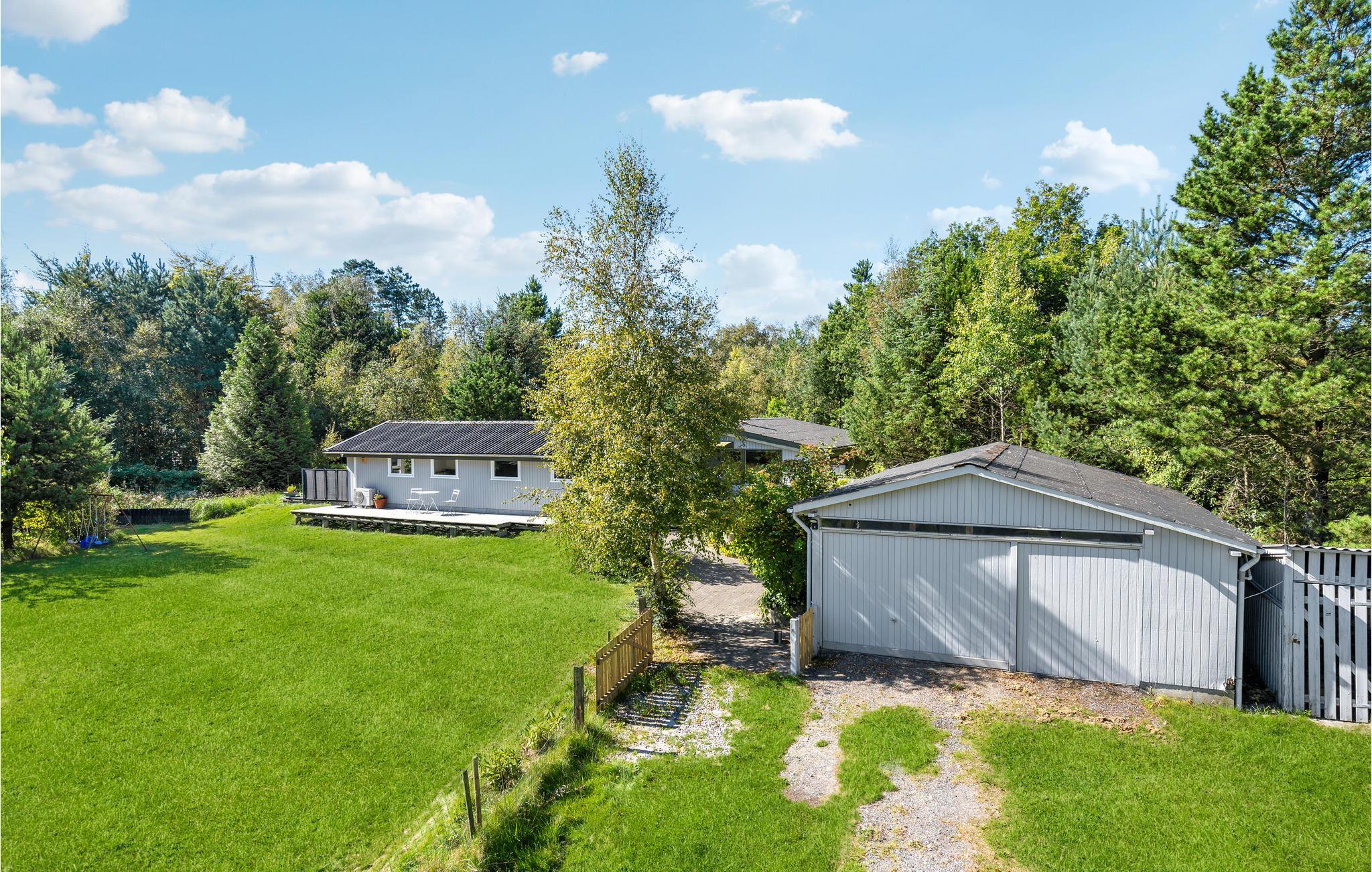 Charmerende feriehus i Lyngså med stor terrasse og vildmarksbad nær Kattegats smukke strand.